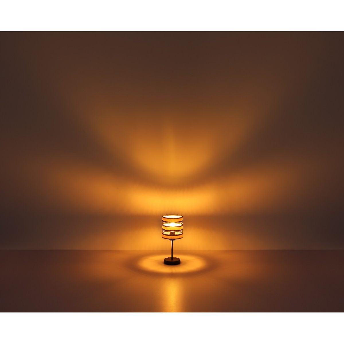 Ova sjajna stona lampa inspiriše svojim jednostavnim dizajnom. Crna okrugla metalna šipka prodire iz okrugle baze i završava se na visini od 33,5 centimetara sa grlom E27. Grlo E27 opremljeno je prelepim abažurom napravljenom od metalnih rešetki i ukrasa nalik drvetu. Slobodan izbor sijalica omogućava vam da odredite boju svetla i jačinu do maksimalnog izlaza od 40 vati.