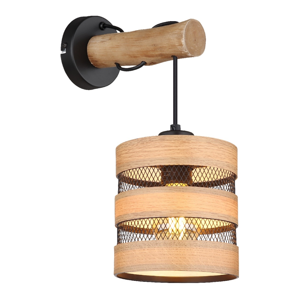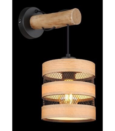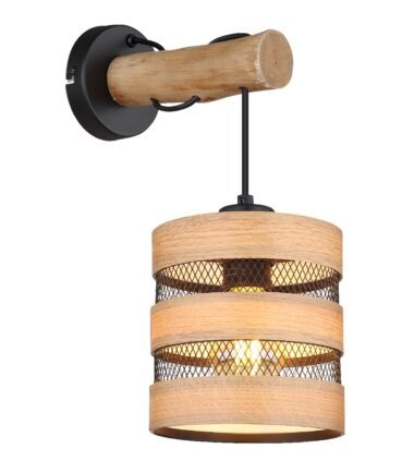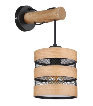 Ova sjajna zidna lampa inspiriše svojim jednostavnim dizajnom. Sa okruglog zidnog nosača isturena je drvena grana sa prepustom od oko 25cm i crnim kablom koji se završava sa E27 grlom. Grlo E27 opremljeno je prelepim abažurom napravljenim od metalnih rešetki i ukrasa nalik drvetu. Omogućava vam da odredite boju svetla i jačinu do maksimalnog izlaza od 40 vati.