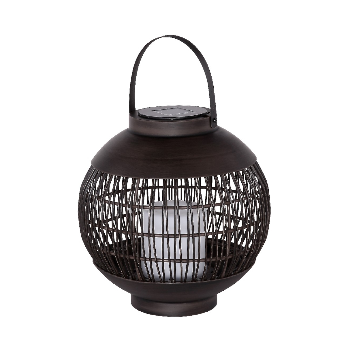 Ovaj sferni (Ø22cm) solarni fenjer se može postaviti ili okačiti. Kućište sa drškom je napravljeno od crnog metala. Kroz fini abažur, svetlost bele plastične sveće deluje posebno efikasno. Spoljašnja lampa osvetljava vaš otvoreni prostor do 8 sati i svojim vatrenim efektom pravi prijatnu atmosferu. Ova solarna lampa opremljena LED diodom od 0,08W ima ugrđen prekidač za uključivanje/isključivanje i idealna je za korišćenje na otvorenom sa svojim IP44 stepenom zaštite.