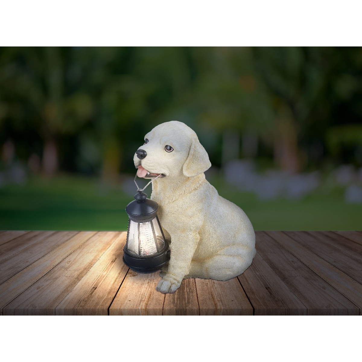 Lepa opcija dekoracije je ova solarna lampa napravljena od bež bele plastike. Zbog oblika psa koji ima fenjer u ustima, ova lampa će odmah biti primećena. Zbog IP44 zaštitne klase, lampa od 25 cm je takođe apsolutno pogodna za korišćenje na otvorenom.