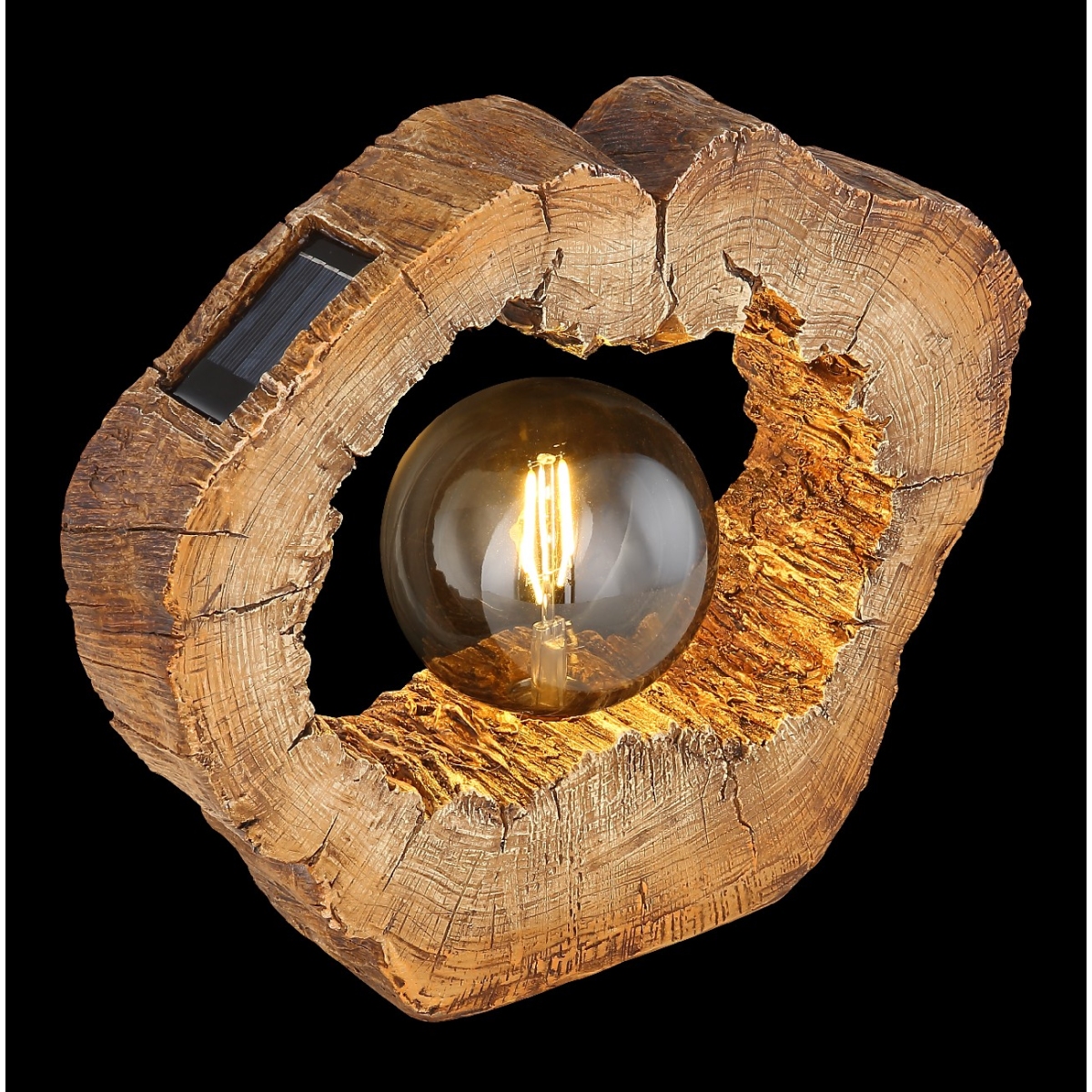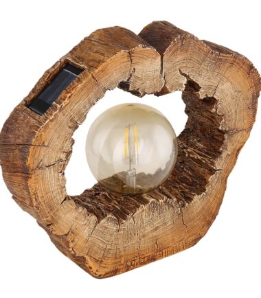 Ova oblikovana solarna lampa drvenog izgledga ulepšava vaš prostor na otvorenom drugim izvorom svetlosti. U obliku šupljeg panja drveta visine skoro 25cm i dužine 30cm nalazi se LED sijalica na panju kojom se upravlja uz pomoć uključenog solarnog panela.