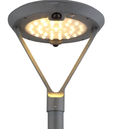 Okruglo, veliko solarno svetlo nudi elegantno i funkcionalno osvetljenje za spoljašnje prostore. Sa kućištem od sivog livenog aluminijuma i nerđajućeg čelika srebrne boje, kombinuje robustan materijal sa stilskim dizajnom. Prozirno staklo i crna, mat plastika daju lampi moderan izgled. Svetlo je opremljeno stepenastim prekidačem i nudi praktičnu kontrolu. Sa svetlosnom snagom od 1176 lumena i temperaturom boje od 3000 K, pruža prijatno, toplo osvetljenje. Zahvaljujući integrisanom detektoru pokreta, svetlo u početku svetli sa 30% intenziteta svetlosti i povećava se na 100% kada senzor detektuje osobu – u trajanju od 30 sekundi. Solarnoj svetlosti je potrebno oko 8 sati da se napuni na punoj sunčevoj svetlosti i nudi vreme osvetljenja do 12 sati. Sa IP54 klasom zaštite, otporan je na vremenske uslove i idealan za spoljašnju upotrebu. Uključuje LED za energetski efikasno osvetljenje.