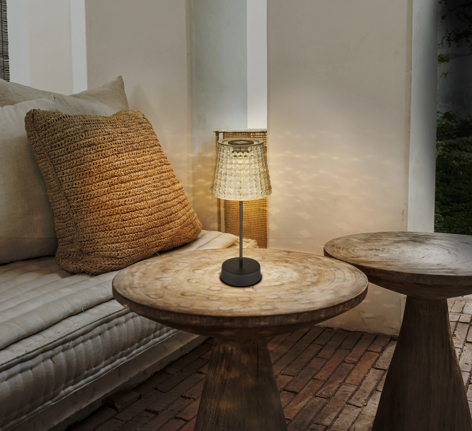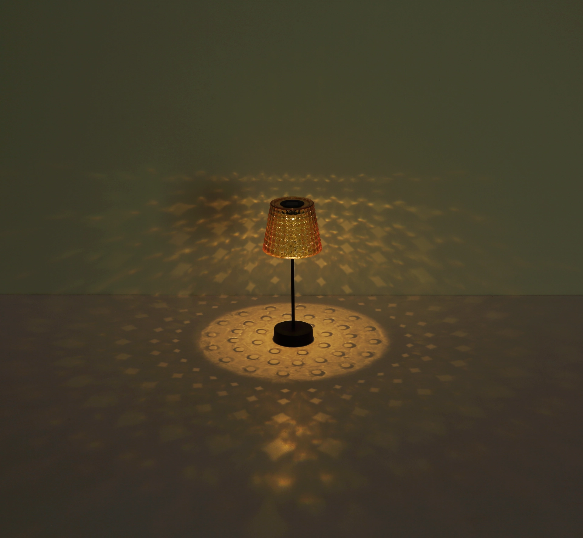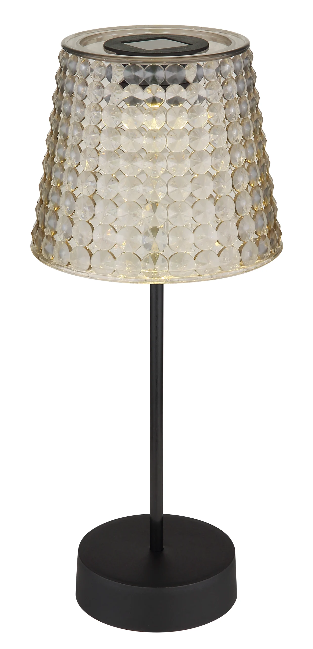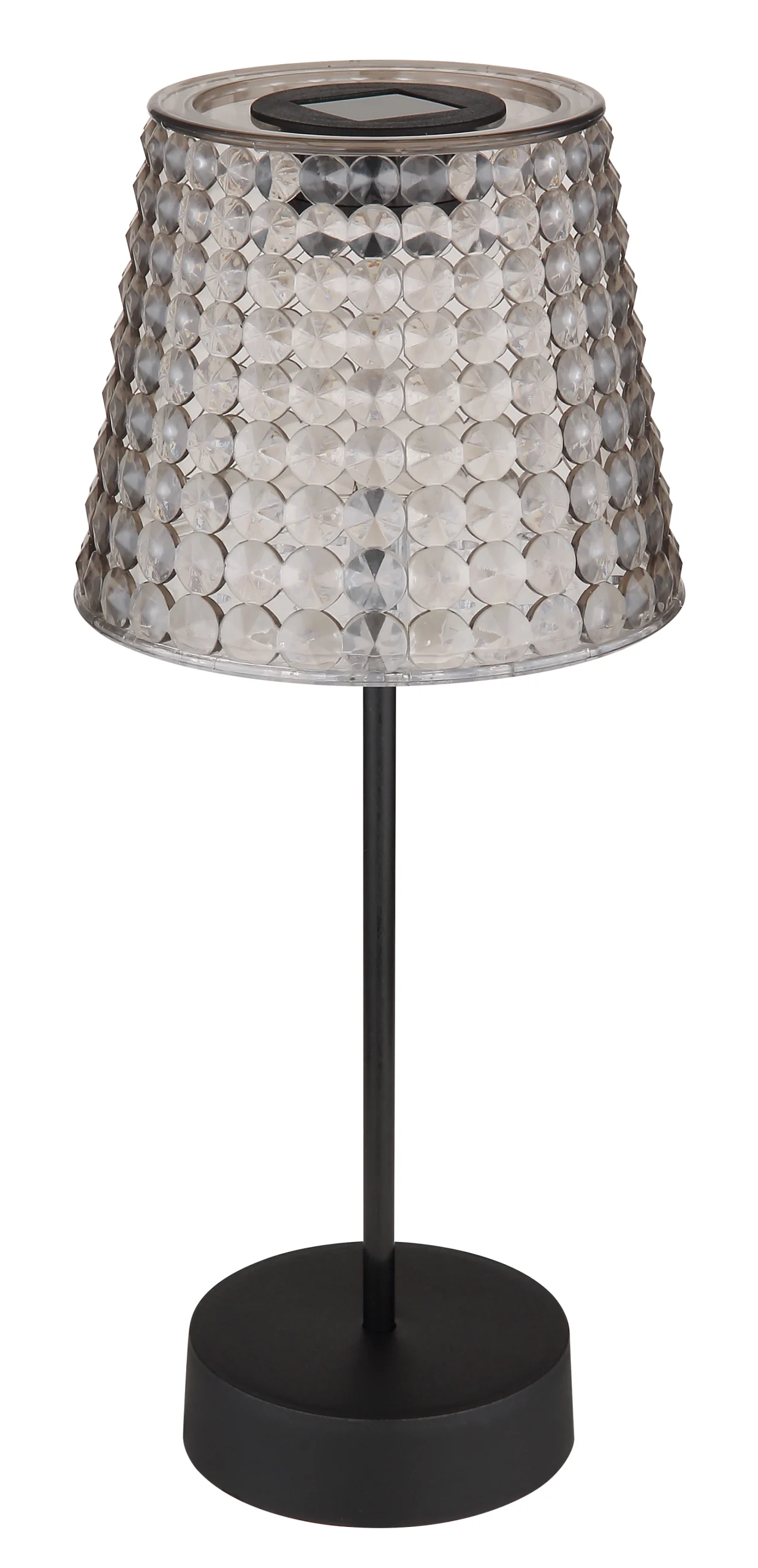 Zapanjujuća solarna lampa koja će vašem prostoru dodati toplu atmosferu. Lampa je napravljena od crne mat plastike i fascinantne plastike boje dima koja nežno filtrira svetlost. Kristalni abažur je jedinstven i daje lampi poseban dodir. Sa prečnikom od 125 mm i visinom od 290 mm, ova solarna lampa je prava atrakcija u svakoj prostoriji. Klizni prekidač je jednostavan za upotrebu. Ova svetiljka se isporučuje sa 1x LED diodom od 0,06 W 3 V. Baterija (40 mAh 1,2 V) je takođe uključena. Ovaj set sadrži 2 dela solarne lampe. Nadamo se da ćete sa ovom solarnom lampom podići svoje sobe na novi nivo!