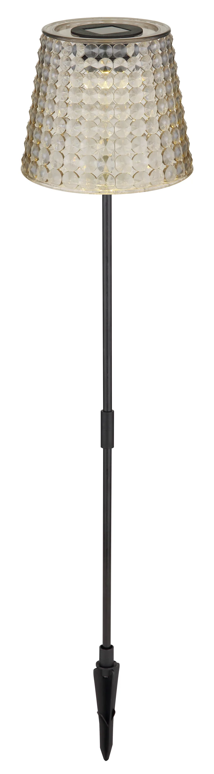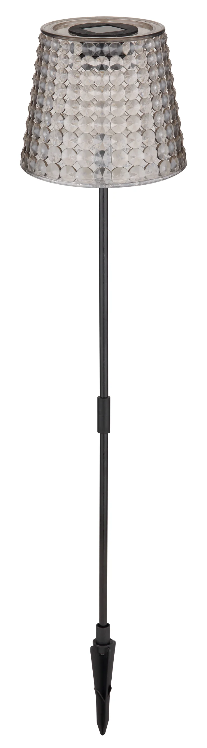 Zapanjujuća solarna lampa koja će vašem prostoru dodati toplu atmosferu. Lampa je napravljena od crne mat plastike i fascinantne plastike boje dima koja nežno filtrira svetlost. Abažur sa kristalnim izgledom je jedinstven i daje lampi poseban dodir. Sa prečnikom od 125 mm i visinom od 600 mm, ova solarna lampa je prava atrakcija u svakoj prostoriji. Klizni prekidač omogućava lako rukovanje. Ova svetiljka se isporučuje sa 1x LED diodom od 0,06 W 3 V. Baterija (40 mAh 1,2 V) je takođe uključena. Ovaj set sadrži 2 dela solarne lampe. Nadamo se da ćete sa ovom solarnom lampom podići svoje sobe na novi nivo!