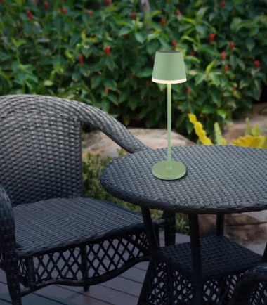 Solarna lampa od bledozelenog metala i plastike nudi elegantno i svestrano rešenje za spoljašnje osvetljenje. Sa svojim suptilnim bledozelenim dizajnom i satenskom plastikom, harmonično se uklapa u svaki dizajn bašte. Lampa se može fleksibilno montirati pomoću jedne ili dve šipke, tako da se mogu odabrati dve različite visine (41 cm ili 26 cm). Prečnika je 110 mm i opremljena je kliznim prekidačem za lako rukovanje. Integrisana baterija (CR18650, 1200mAh, 3.7V) omogućava samostalan rad, a 10 LED dioda (po 0.06W, 3V) proizvode toplo belo svetlo sa 3000 K. Zahvaljujući IP44 sertifikatu, lampa je otporna na vremenske uslove i savršena je za upotrebu u bašti ili na terasi. Ova solarna lampa kombinuje praktičan dizajn sa prijatnim kvalitetom svetlosti i fleksibilnom instalacijom.