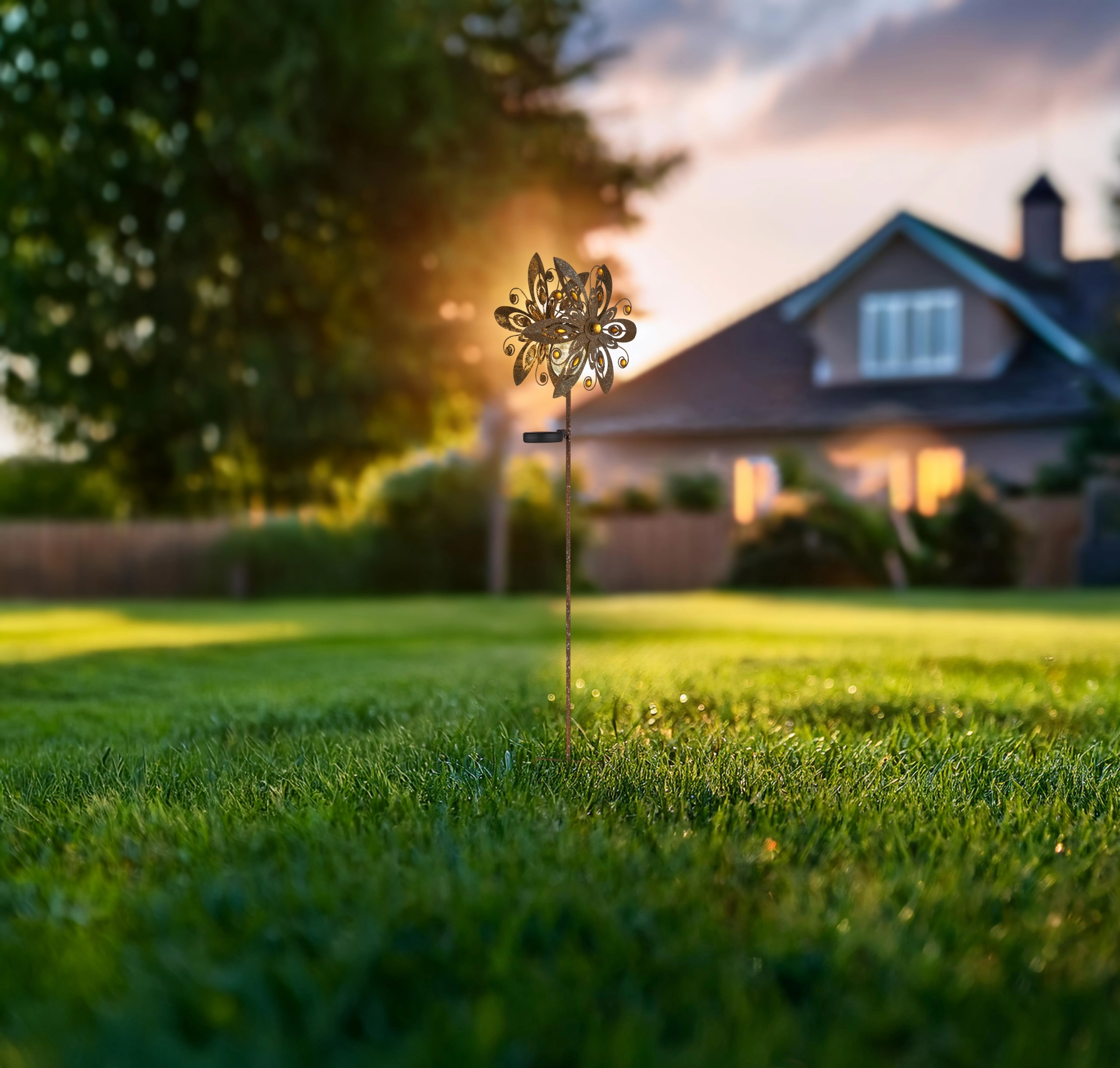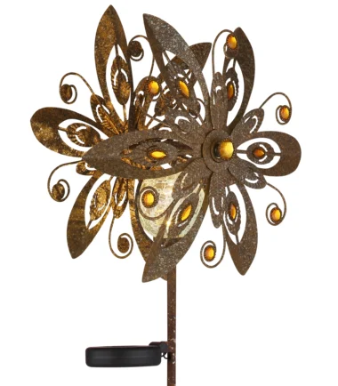 SOLARNA LAMPA METAL RUST u dizajnu vetroturbine nudi rustično i šarmantno rešenje za osvetljenje vaše bašte. Metalno kućište boje rđe i providni stakleni abažur sa žutim staklenim kristalima stvaraju toplu igru svetlosti. Sa temperaturom svetlosti od 3000K i praktičnim prekidačem pod pritiskom, ova solarna lampa je jednostavna za upotrebu. IP44 zaštita osigurava da je svetiljka otporna na vremenske uslove i da pouzdano radi u različitim vremenskim uslovima.