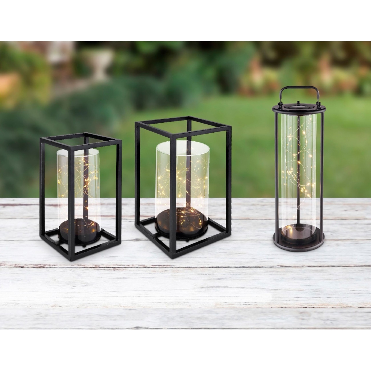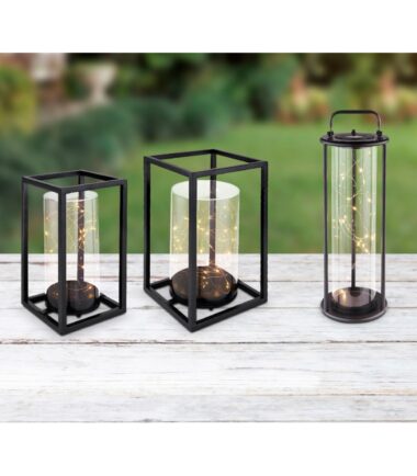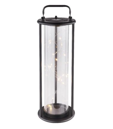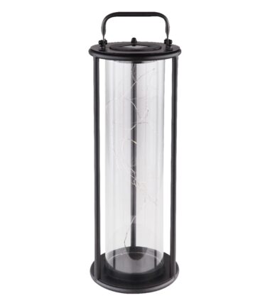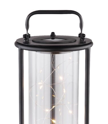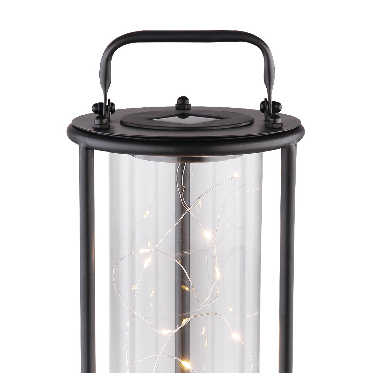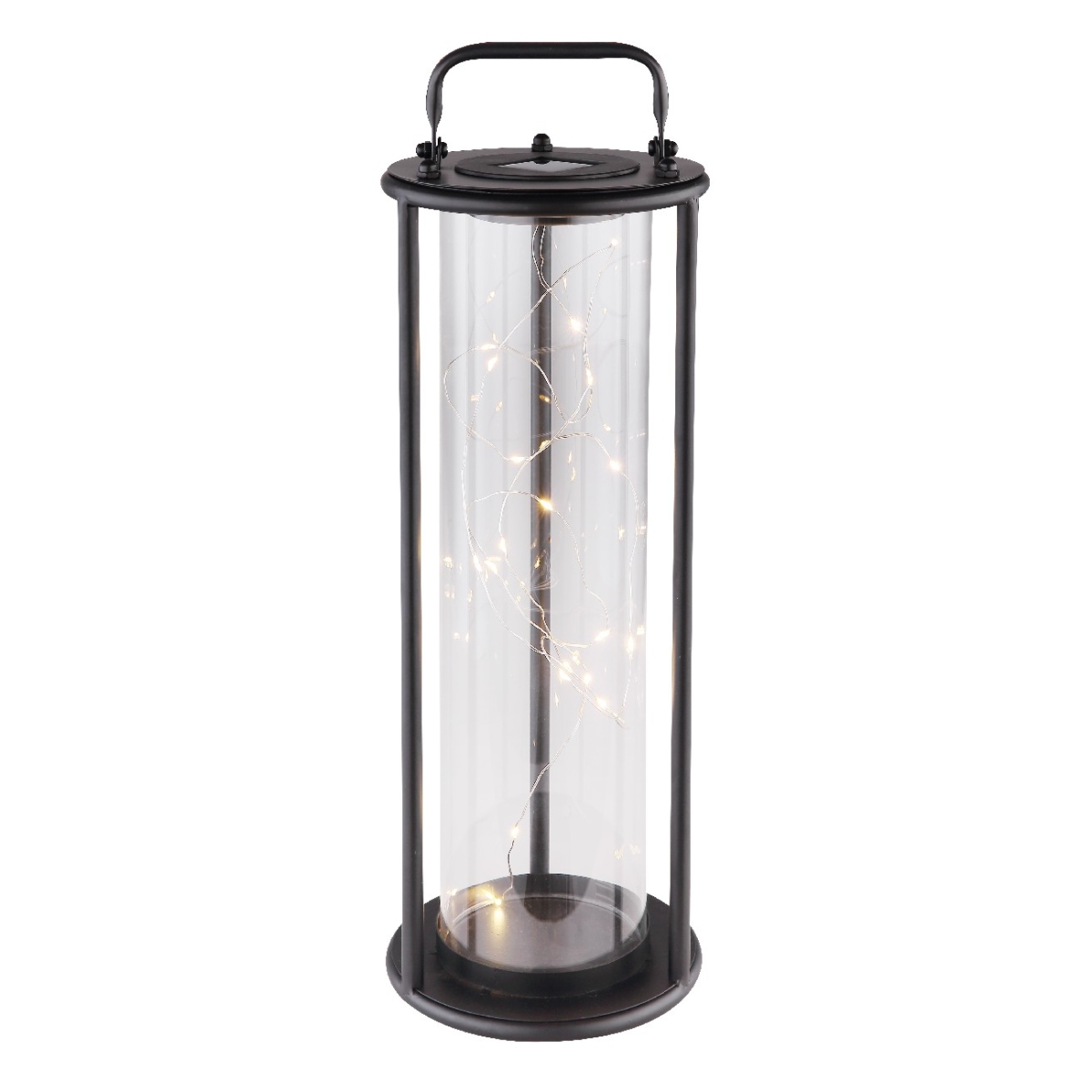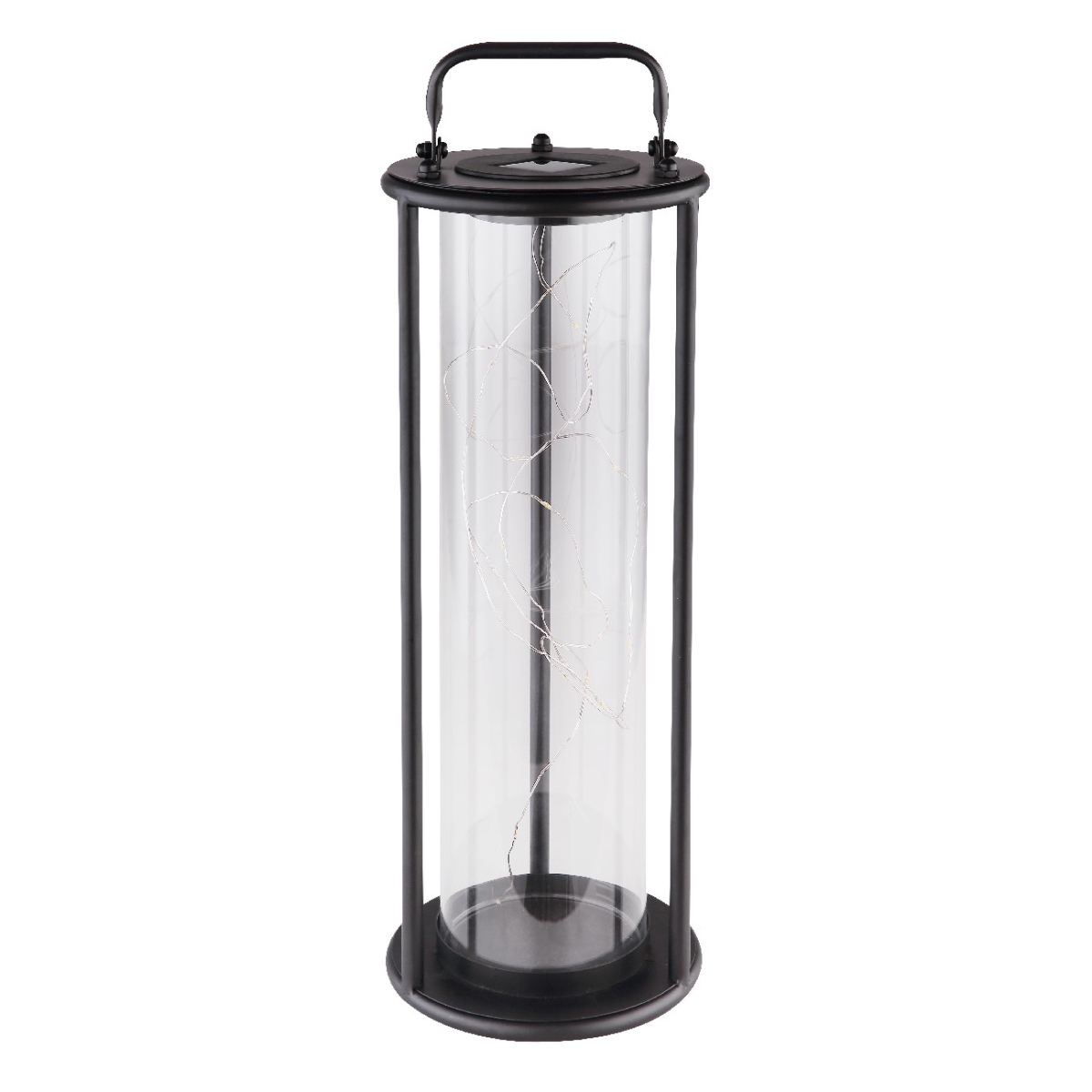 Ova elegantna, okrugla solarna lampa napravljen aje od kombinacije crnog metala i providnog plastičnog abažura. U obliku fenjera, ova solarna stona lampa dočarava prijatnu atmosferu na svakoj terasi i na otvorenom prostoru. Zahvaljujući priloženom nizu svetla sa toplom belom bojom, ova viseća ili stajaća 40,5 cm visoka spoljna lampa kombinuje veliki deo udobnosti. Pomoću prekidača, ova solarna lampa sa integrisanom baterijom može da se uključi i isključi i osvetli vašu okolinu do 8 sati. Zahvaljujući IP44 stepenu zaštite, ova dekorativna svetiljka je idealno pogodana za upotrebu na otvorenom.