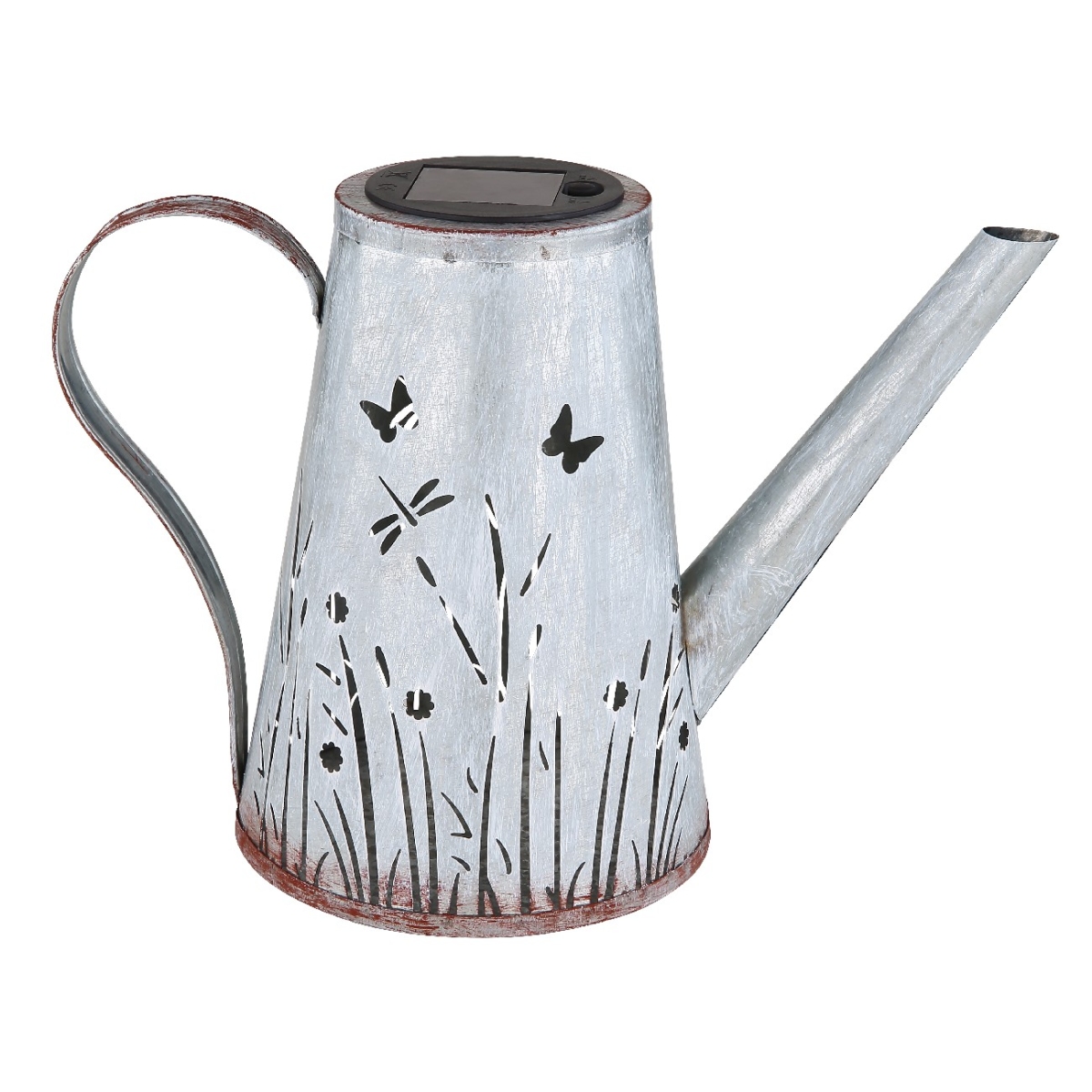 Ova solarna lampa ima metalno kućište u plavoj antiknoj boji i ima kurasne detalje boje rđe. Abažur je napravljen od crne plastike. Lampa ima prekidač i napaja se baterijom tipa AAA kapaciteta 300mAh i naponom od 1.2V. Zaštićen je od prskanja vode u skladu sa zaštitnom klasom IP44. Dimenzije lampe su LxWxH: 270x140x190mm. Integrisani LED ima snagu od 0,03W i temperaturu boje od 3000K.
