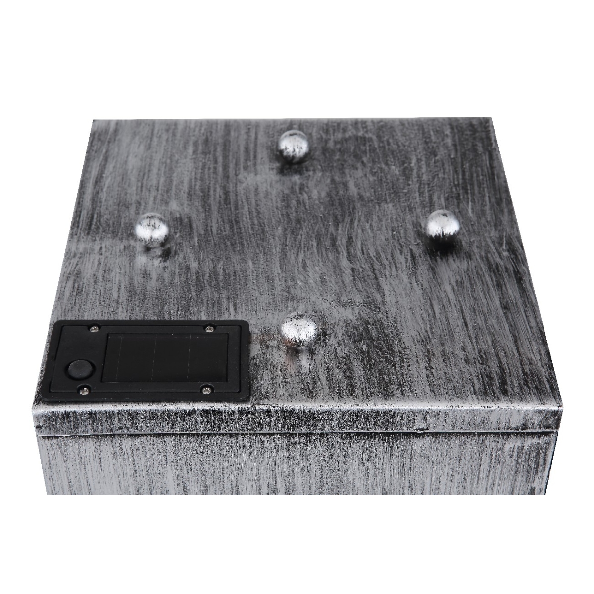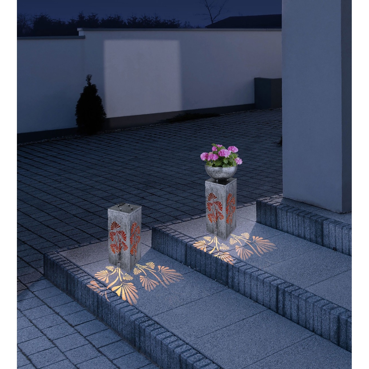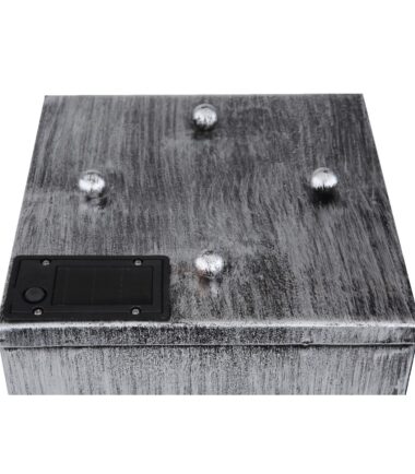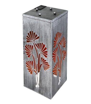Sa ovom kockastom solarnom lampom napravljenom od metala srebrne boje (25×25 cm) možete ukrasiti svoj otvoreni prostor. Solarna lampa od 59 cm ima posudu na vrhu koja se može ukloniti i u koju možete staviti cveće. Pored toga, svetlost se probija kroz otvore u obliku biljke, sa sve četiti strane, i pravi prelepu senku u toplo beloj boji (3000 Kelvin). LED sijalice na solarni pogon doprinose prijatnoj atmosferi.