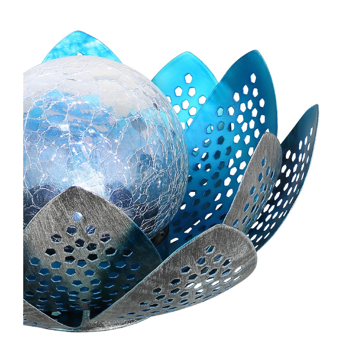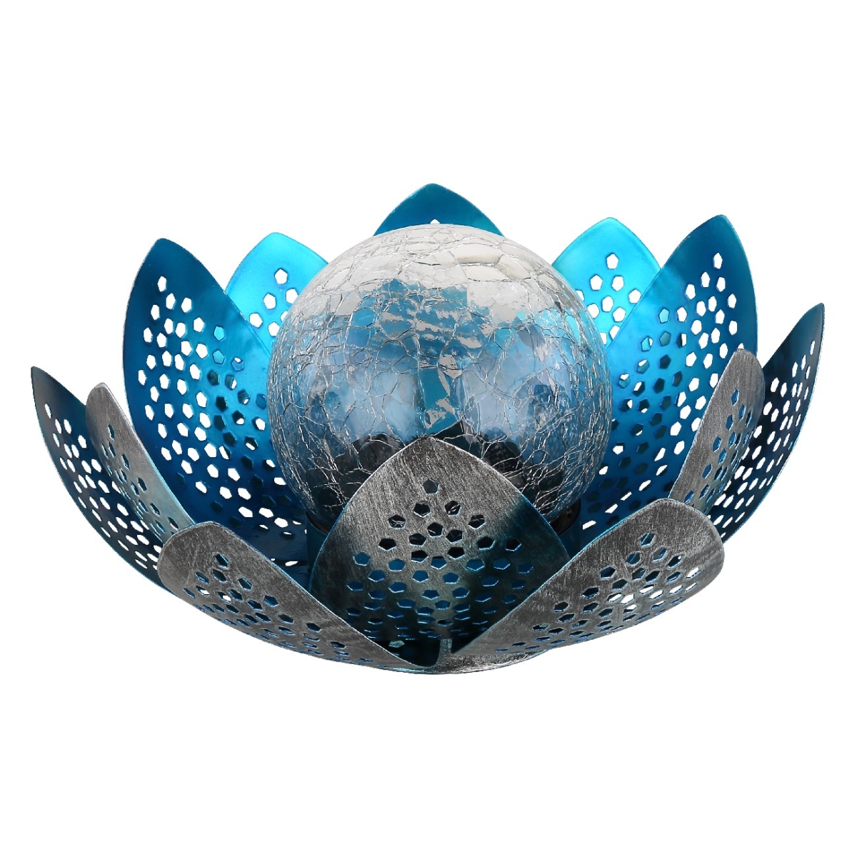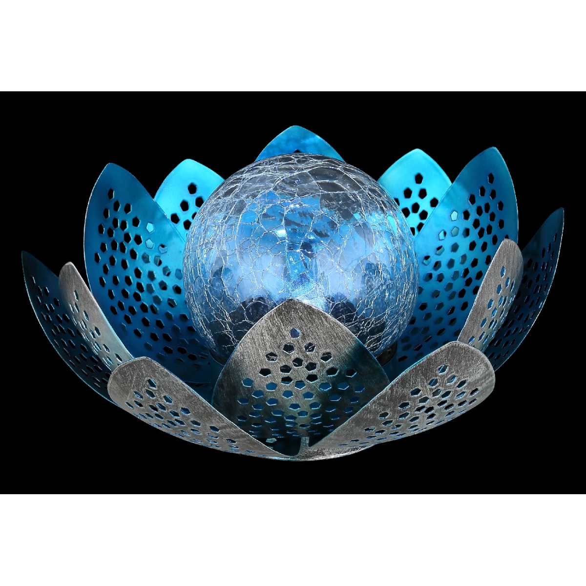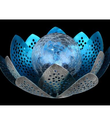 Ova prelepa solarna lampa u srebrnoj boji inspiriše svojim sjajnim dizajnom. Metalni limovi sa prelepim dekorativnim prorezima kruže oko staklene kugle (Ø25cm), koja emituje hladno belo svetlo od 6500 kelvina i tako pruža prijatnu atmosferu. Solarna lampa veličine 12,5 centimetara u obliku cveta takođe ima IP44 stepen zaštite od prskanja vode.