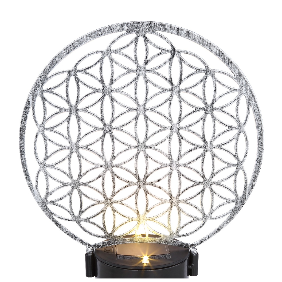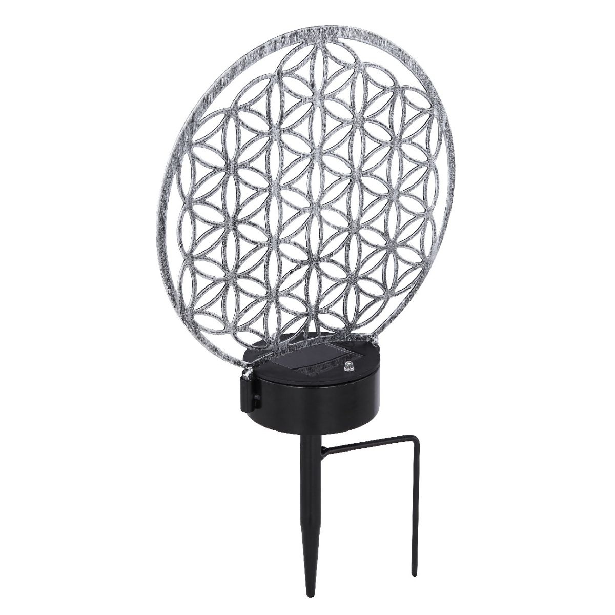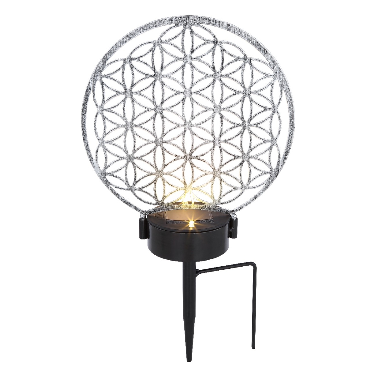 Ova solarna lampa od metala srebrne boje (zaštitna klasa IP44) je prelep dodatak vašoj bašti. Uz pomoć oštrog vrha na dnu, solarna lampa se može lako i fleksibilno smestiti u meko tlo. Prijatno topla bela LED sijalica (3000 Kelvina) sija odozdo na metalnoj mreži sa visinom od 31cm i na taj način doprinosi prijatnom ambijentu u vašem otvorenom prostoru.