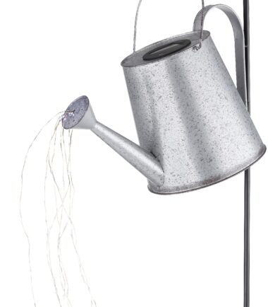 Ova solarna lampa je predivan dodatak vašoj bašti. Solarna lampa od 1,3 m može se postaviti fleksibilno i lako u meko tlo uz pomoć oštrog vrha na dnu lampe. Na crnoj metalnoj osnovi visi kantica za zalivanje srebrne boje. Međutim, iz nje ne izlazi voda, već brojna vilinska svetla sa ukupno 80 LED sijalica. Prijatno neutralno svetlo (4000 Kelvina) LED lampa takođe može stvoriti idiličnu atmosferu u vašem otvorenom prostoru.