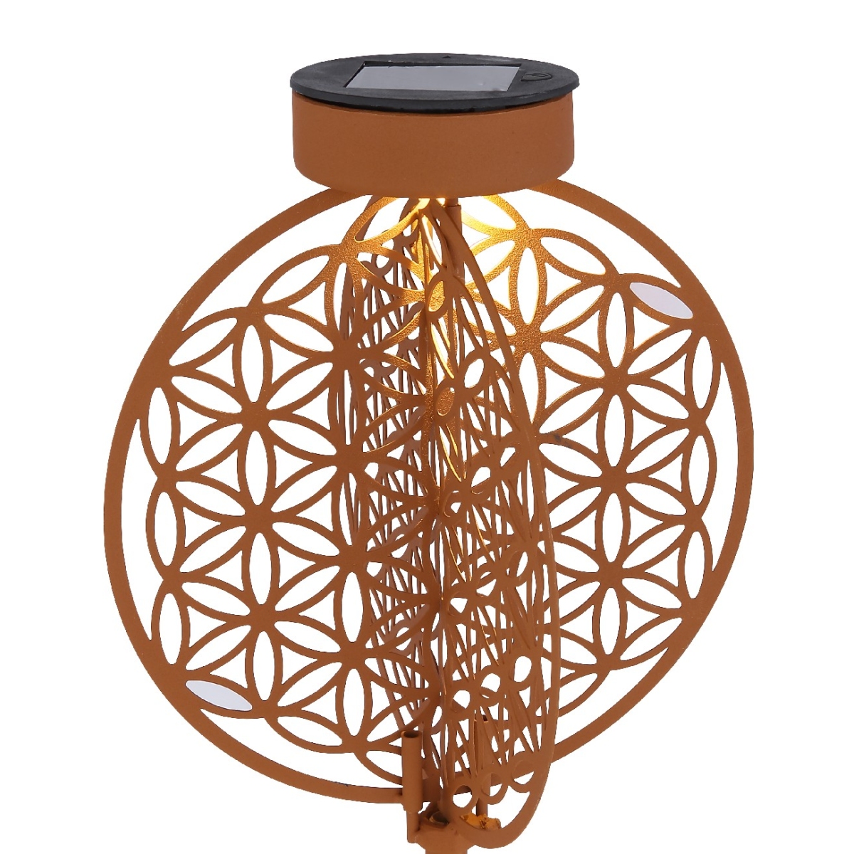 Ova nerđajuća metalna solarna lampa (IP44 ocena) je prelep dodatak vašoj bašti. Uz pomoć oštrog vrha na dnu, može se lako i fleksibilno smestiti u meko tlo. Prijatno toplo belo svetlo (3000 Kelvin), LED sijalice su na solarno napajanje sijaju odozgo na elegantnoj šari u dve ortogonalno navučene metalne ploče (ø 20 cm svaka) i na taj način doprinose prijatnom ambijentu u vašem otvorenom prostoru.