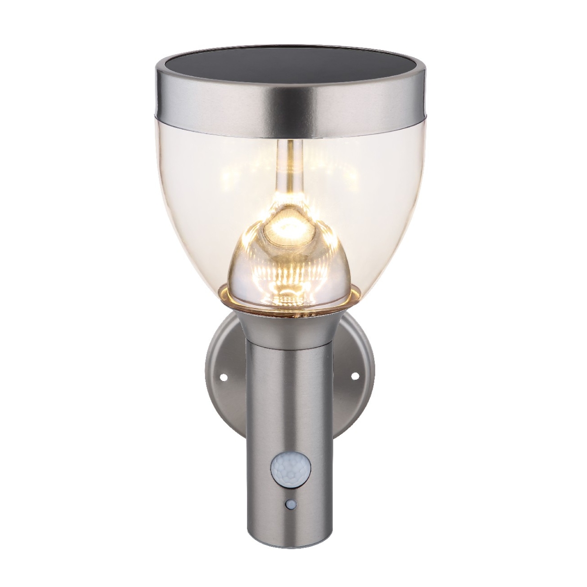 Ova solarna lampa ima IP44 stepen zaštite i zaštićena od prskanja vode i zato je predodređena za upotrebu na otvorenom. Ova 28,7 cm visoka, od nerđajućeg čelika, plastična lampa ima 16 LED sijalica, od kojih svaka ima snagu od 0,2 vati, koje odlično osvetljavaju odabranu površinu. Detektor pokreta detektuje radijus do 90° i reaguje na razdaljinu od 2-6 metara. Ovo solarno svetlo ima dva nivoa, trajno svetlo i druga etapa ima viši intenzitet svetlosti, koji postaje aktivan tek kada se krećete.