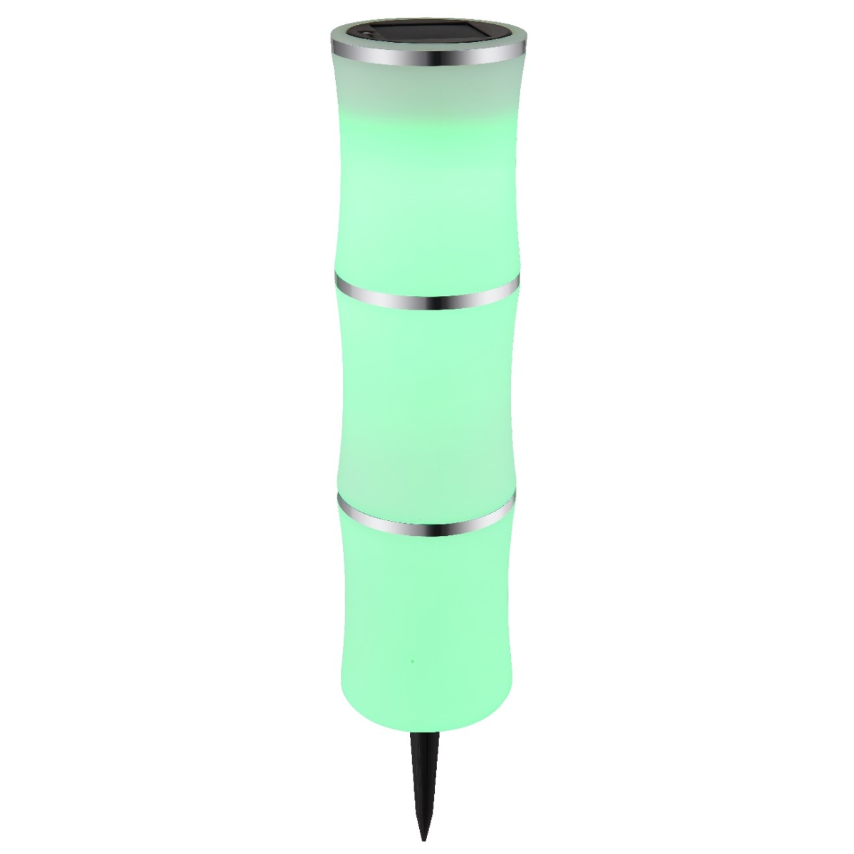 Ova prelepo solarno svetlo za upotrebu na otvorenom inspiriše svojim sjajnim dizajnom. Oblikovani beli cilindar (Ø10,5cm) visine 40cm i prečnika Ø10,5cm prodire sa vrha zemlje. Integrisana RGB LED sijalica vam omogućava da menjate boje između crvene, zelene i plave i takođe ima IP44 stepen zaštite od prskanja vode.