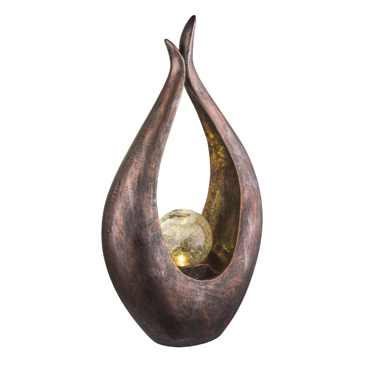 Skoro da se može pomisliti da je umetničko delo, ova solarna lampa izgleda veoma elegantno i plemenito zbog svog dizajna i interplay plastike bronzane boje i providnog stakla koje izgleda kao da je polomljeno. Zbog IP44 zaštitne klase, ova lampa velika 50 cm je takođe pogodna za korišćenje na otvorenom.