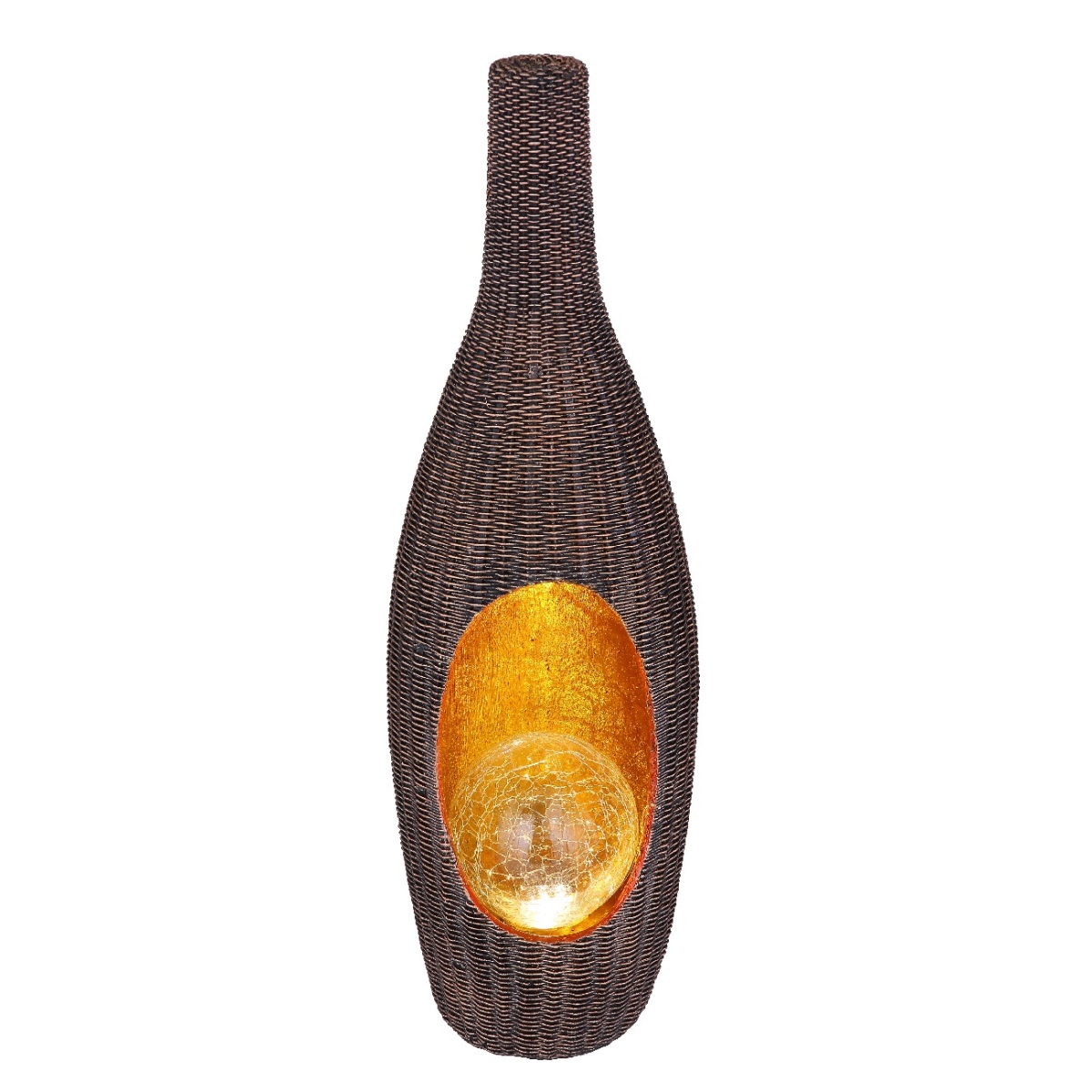 Ova solarna lampa će izazvati pometnju na vašoj terasi. Skoro 50cm velika solarna lampa u obliku vaze, sa izgledom ratana pruža pravu atmosferu. U sredini ima staklenu kuglu koja ima izgled napuklog stakla. Svetlost se reflektujeje na unutrašnji deo lampe u zlatnoj boji i tako izgleda prijatno i opuštajuće. Kada se potpuno napuni, vaza će vam svetleti do 8 sati.