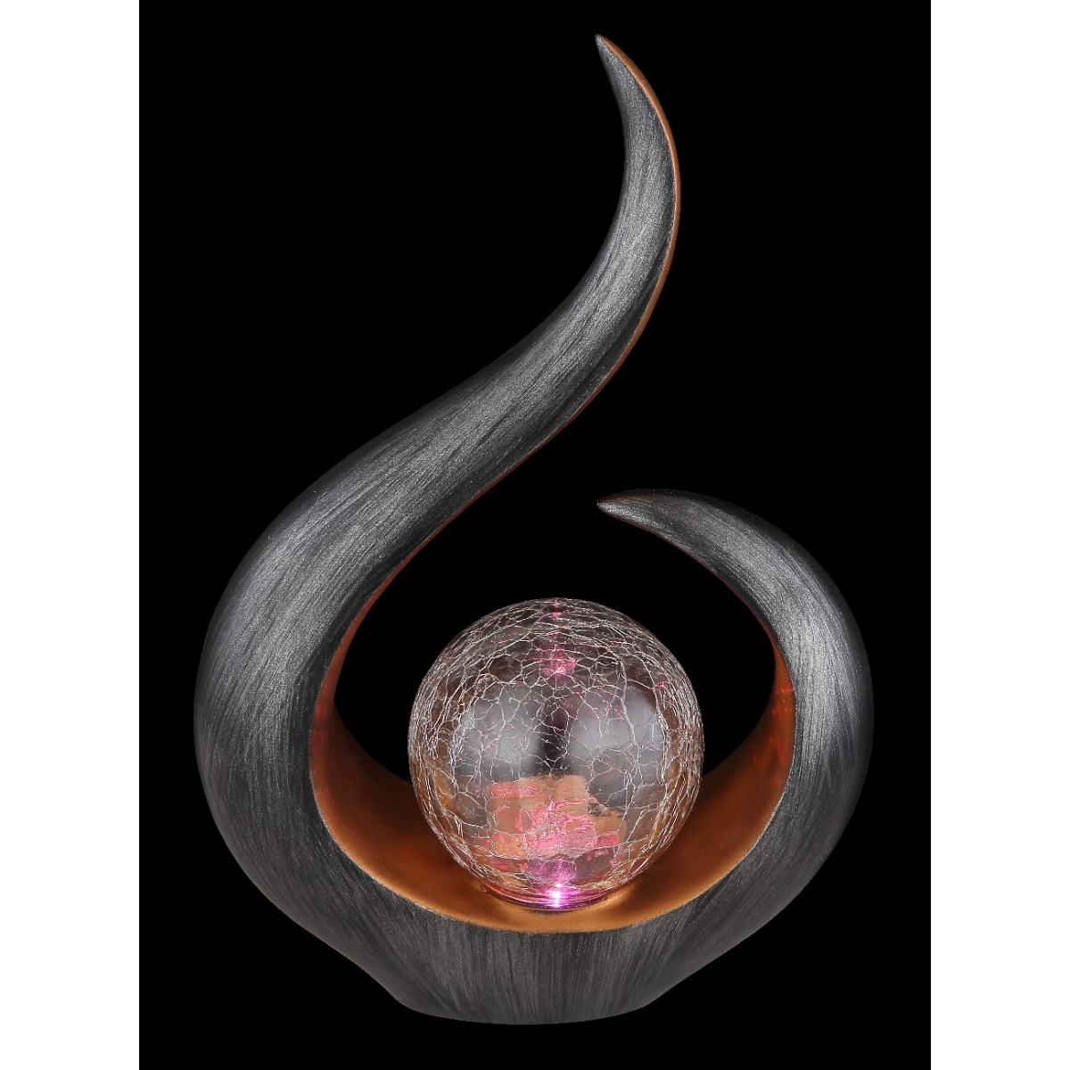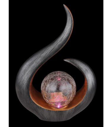 Ovo bi mogao biti detalj koji će privlačiti poglede na vašoj terasi ili balkonu. Prelepo ugrađena, upadljivo lepa staklena kugla (Ø10cm) ispucalog izgleda naizmenično pruža šareno svetlo (crveno, zeleno, plavo). Ova skoro 34cm velika solarna lampa garantuje pravo raspoloženje u letnjim večerima.