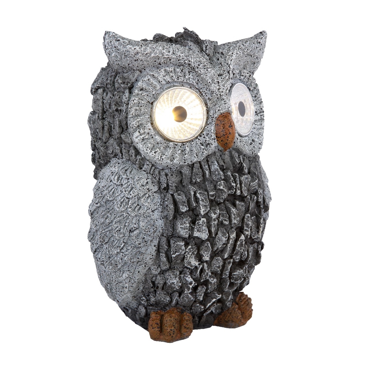 Ova prelepa solarna sova privlačiće poglede u svakoj bašti. Ova siva plastična solarna lampa daje baštenskom delu prirodan sjaj. Uz osvetljenost od 2x 0.06W LED, ovo 195mm visoko solarno svetlo oduševljavaće vas do 8 sati. Sa zaštitnom klasom IP44, ova solarna lampa je idealna za upotrebu na otvorenom.