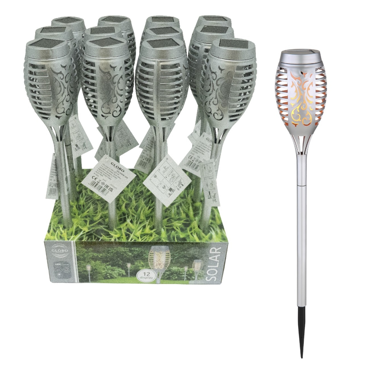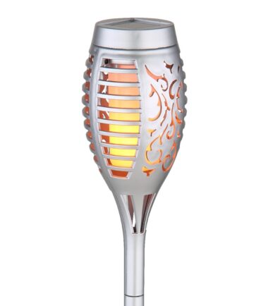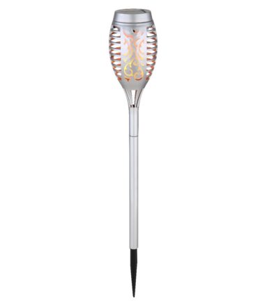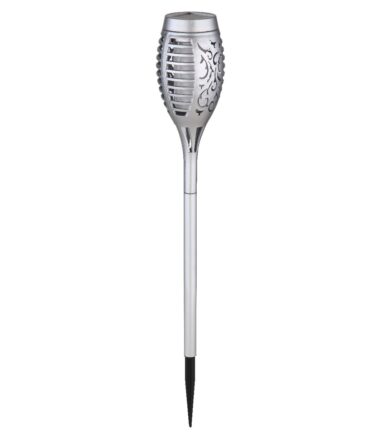 Solarna lampa u obliku baklje idealan je dodatak za vašu baštu ili terasu. Telo lampe napravljeno je od plastike srebrne boje, što lampi daje moderan i elegantan izgled. Abažur je takođe napravljen od plastike srebrne boje i i ma oplane ukrasne izreze koji stvaraju prijatno difuzno svetlo. Lampa ima 12 energetski efikasnih LED dioda i snagu od 0.1W, solarna lampa pruža prijatno osvetljenje sa temperaturom boje od 1600K. Praktičan klizni prekidač olakšava paljenje i gašenje. Zahvaljujći IP44 stepenu zaštite, solarno svetlo je pogodno za korišćenje na otvorenom. Postavite akcente u svojoj bašti uz ovo moderno i funkcionalno svetlo. NAPOMENA: Cena se odnosi na 1 komad, moguće je poručiti samo dispej od 12 komada.