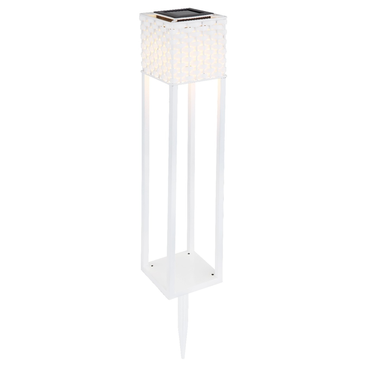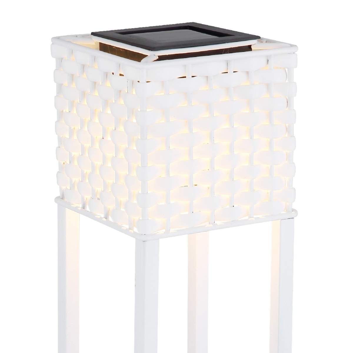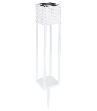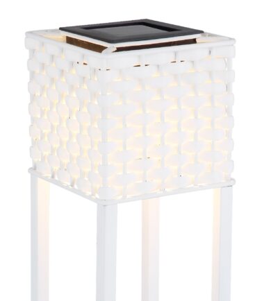 Ova pravougaona solarna lampa (10x10x62 cm) napravljena od belog metala je predivan dodatak vašoj bašti. Solarna svetlost se može lako postaviti u meko tlo koristeći vrh za uzemljenje i ima integrisan prekidač za uključivanje ili isključivanje. Metalni okvir je prekriven belim ratanom na vrhu. U kombinaciji sa prijatno toplom belom svetlošću (3000 Kelvina), LED sijalice na solarno napajanje, možete postaviti prelepe akcente u vašem prostoru na otvorenom.