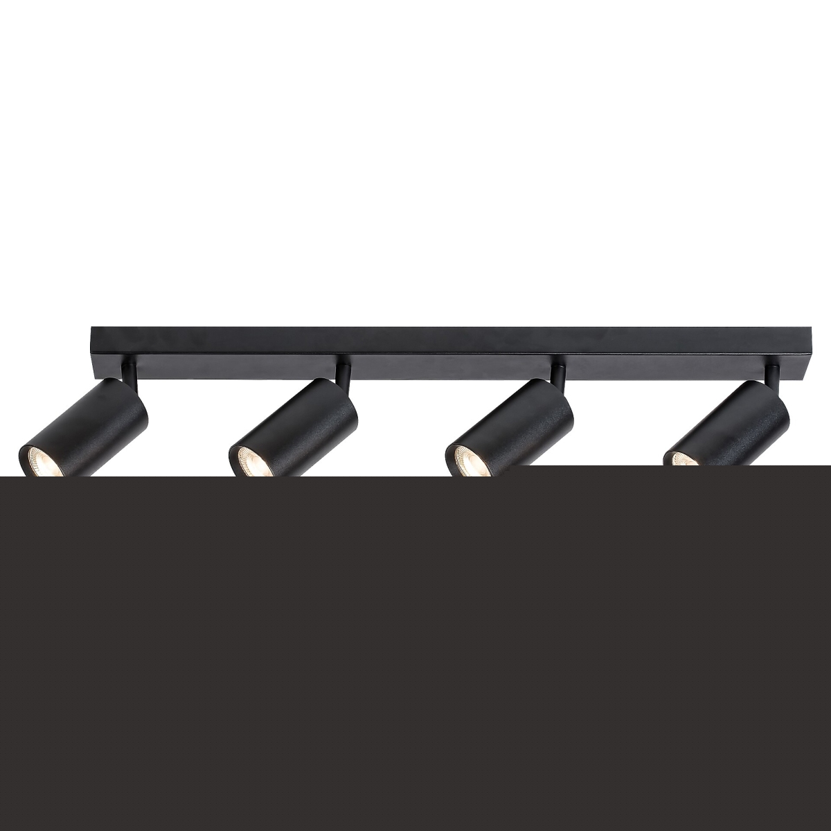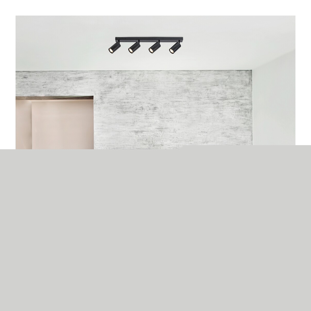 Reflektor SOLO sa 4 sijalice u minimalnom stilu biće praktičan deo nameštaja vaše moderne dnevne sobe ili spavaće sobe. Ovaj crni model je u potpunosti izrađen od metala i upotpunjen je cilindričnim abažurima i izduženim dekorativnim postoljem. Ovaj reflektor može da se koristi sa četiri sijalice, svaka snage do 25W. Tip grla je GU10. U zavisnosti od vaših zelja, možete odabrati sijalice koje zrače toplo ili prirodno belo svetlo. Zahvaljujući fleksibilnim glavama lampe možete usmeriti svetlost lampe prema vašim potrebama i tako efikasno osvetliti celu prostoriju. Dimenzije SOLO reflektora sa 4 sijalice su sledeće: širina 600 mm, visina 140 mm, prečnik svakog abažura je 55 mm, rastojanje lampe od plafona je 135 mm. Ovaj model se isporučuje bez izvora svetlosti.