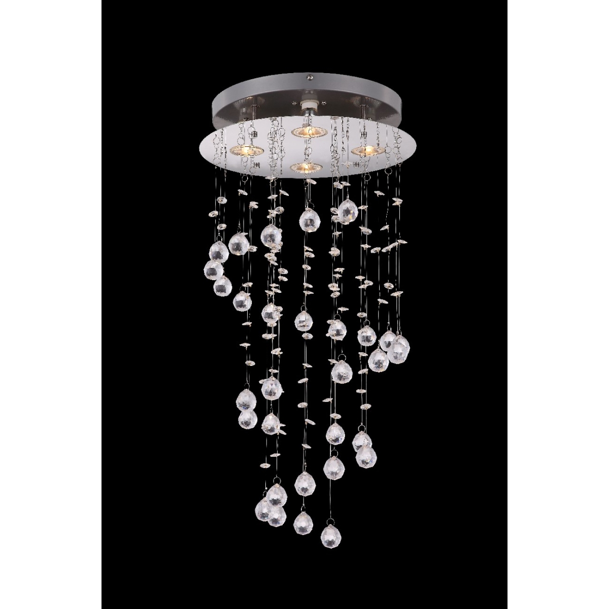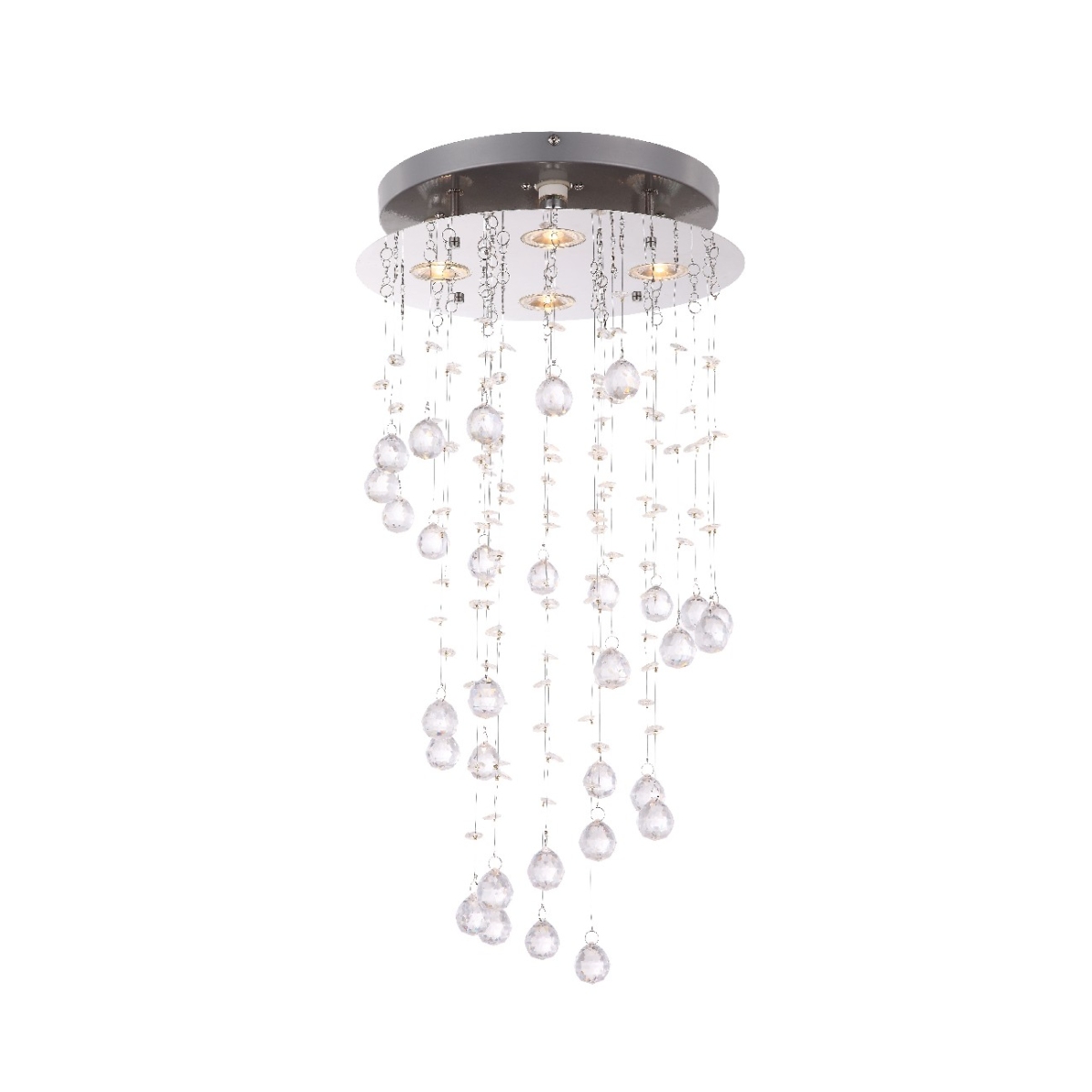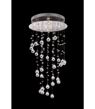 Sa ovom umetničkom okruglom, hromiranom plafonskom lampom, postavljeni su sjajni akcenti. Korišćena, na primer, u dnevnoj sobi, ova lampa, sa visećim, providnim kristalima, može doprineti impresivnom okruženju. Ova lampa ima prečnik od 32 cm i opremljena je sa četiri GU10 grla, koje već uključuju zamenljive LED sijalice sa 1680 lumena. Uz ostale lampe ove serije možete upotpuniti sliku u svojim sobama.