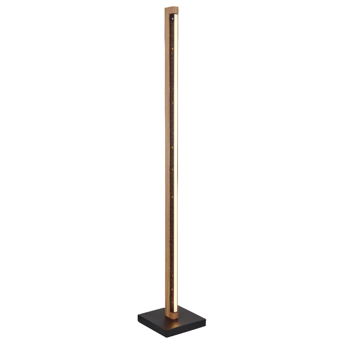 Kvadratna podan lampa sa ravnim drvenim gredama je moderan dodatak vašem domu. Mat crno lakirano telo u kombinaciji sa smeđim drvenim gredama daje lampi moderan i topao izgled. Aluminijumski abažur je takođe mat crne boje i opremljen je opal plastikom, koja obezbeđuje ravnomernu distribuciju svetlosti bez odsjaja. Sa veličinom od 180 mm po dužini i širini, ova lampa štedi prostor i savršeno se uklapa u male prostore. Osvetljenost od 500 lumena sa snagom od 23W i prijatnom temperaturom boje od 3000K stavra prijatnu atmosferu. Koristite praktičan prekidač na kablu za paljenje i gašenje podne lampe i uživajte u prijatnom svetlu.