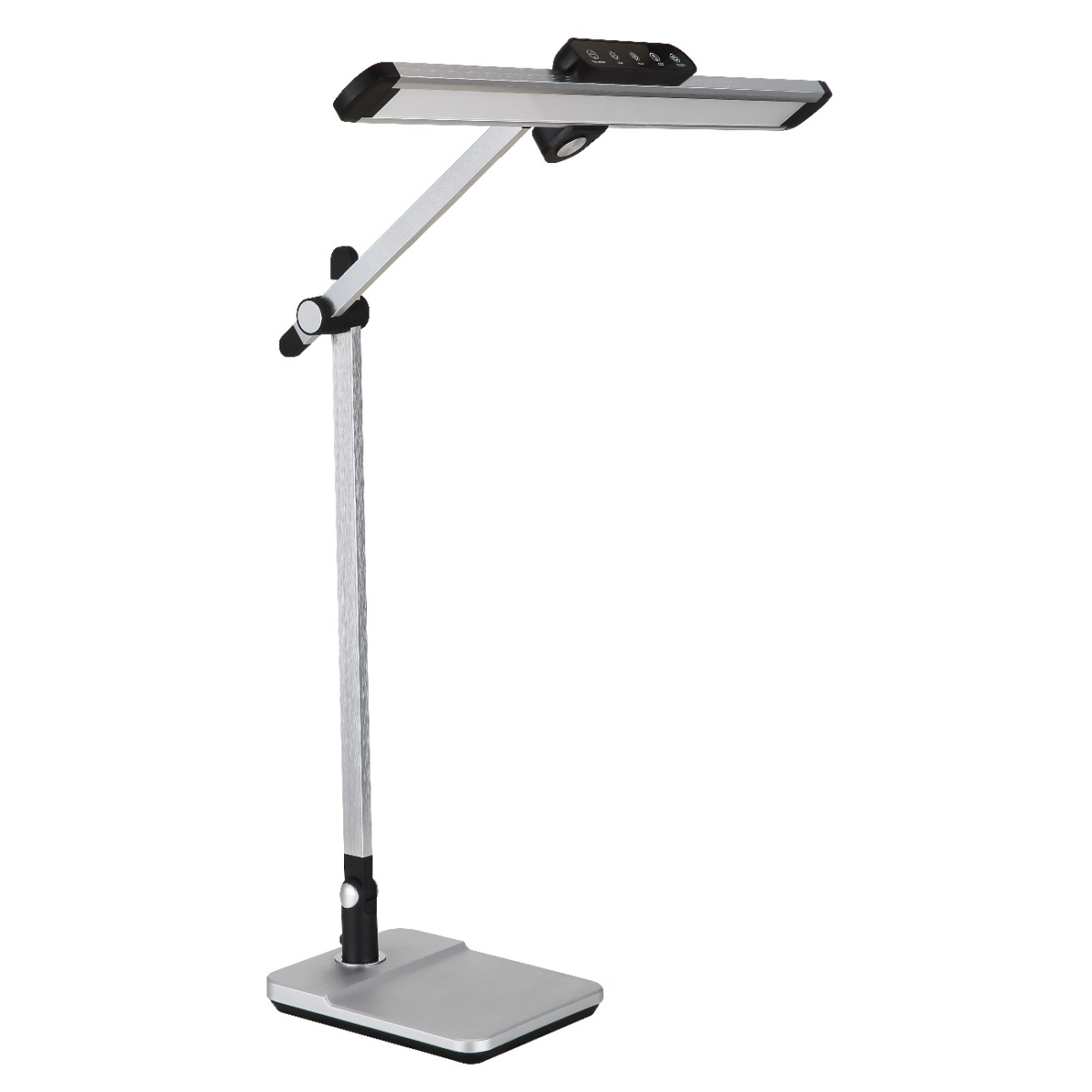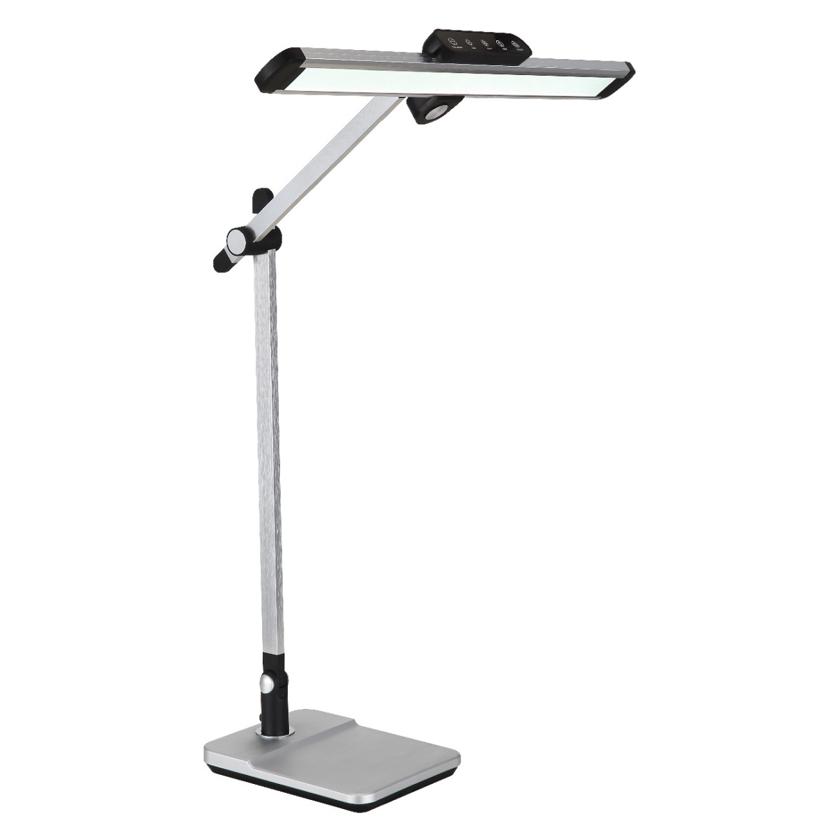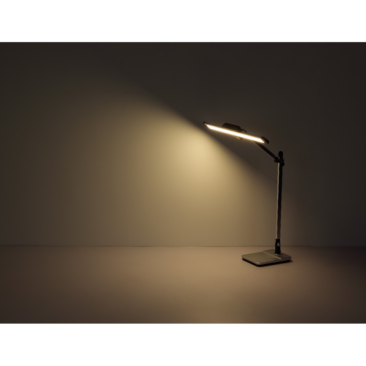 Stona lampa serije LOPIRA, nije samo funkcionalna već je detalj koji će privlačiti poglede u svakoj prostoriji. Telo napravljeno u od plastike srebrne boje i crne plastike, dok je abažur napravljen od satinirane plastike. Stona lampa ima LED osvetljenje koje se može prigušiti sa dimerom na dodir, boje se mogu fiksirati i ima funkciju memorije. Adapter je uključen. Sa dužinom od 368 mm i širinom od 500 mm, svetiljka nudi prijatno osvetljenje sa snagom od 680 lumena i CCT od 3000K do 6500K. Svetlo takođe ima funkciju podsetnika koje treperi svakih 30 minuta da vas podseti da napravite pauzu. Ova moderna stona lampa je idealna za vašu kancelariju.