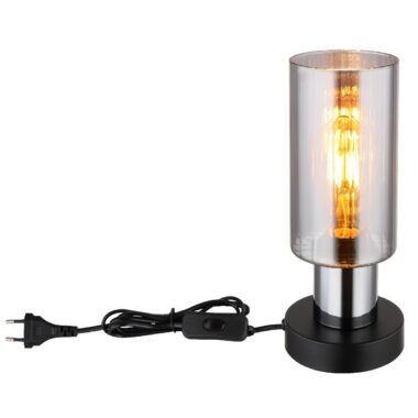 Stona lampa je napravljena od mat crnog metala i dimljenog stakla. Ima crni PVC kabl i opremljena je prekidačem na kablu. Dimenzije su ø: 110mm i V: 270mm. Dužina kabla je 1500mm. Svetiljka zahteva 1 E27 sijalicu maksimalne snage 25W i napona 230V, koja nije uključena. Nadamo se da ćete biti zadovoljni ovom stonom lampom.