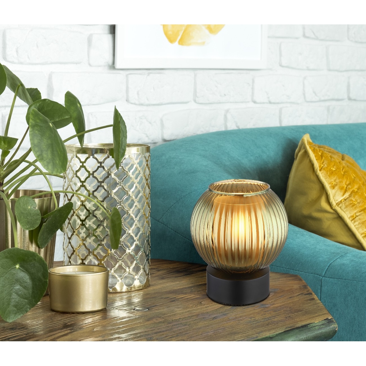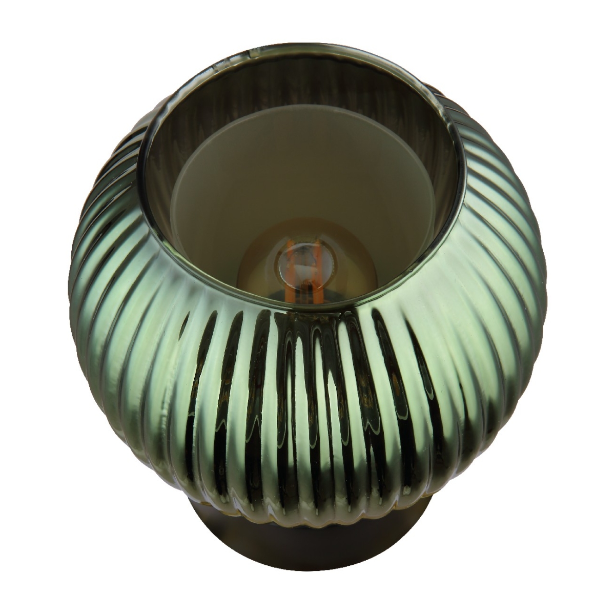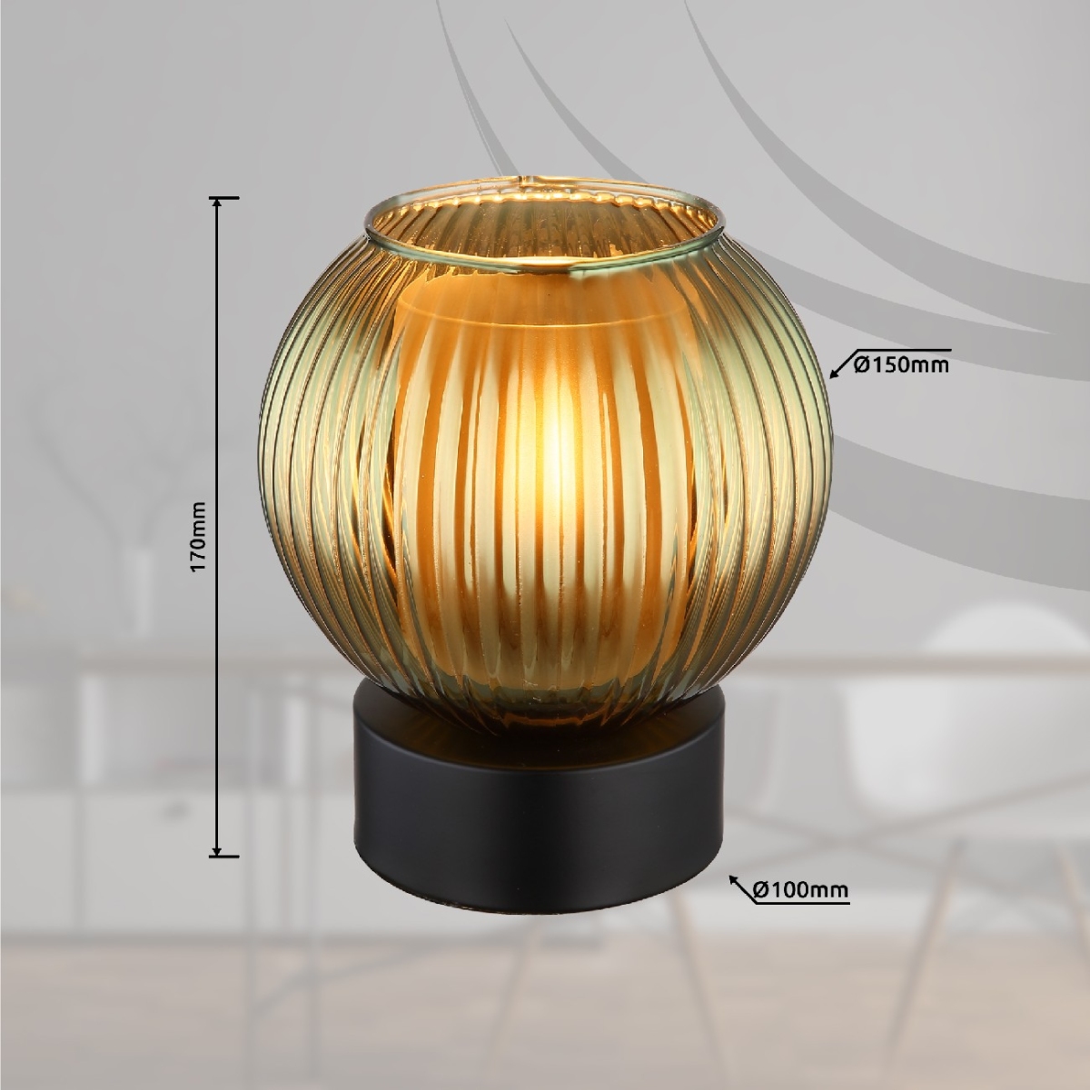 Okrugla stona lampa, serija ZUMBA, sa staklenom kuglom je moderan rasvetni element za vaš dom. Telo od mat crnog metala i staklena kugla u zelenoj boji daju ovoj lampi plemenit i moderan izgled. Zahvaljujući grlu E27, stona lampa je zgodna za različite izvore svetlosti. Sa prečnikom od 150 mm, lampa se savršeno uklapa na vašu komodu, radni sto ili noćni stočić, stvarajući prijatnu atmosferu. Preklopni prekidač na kablu omogućava praktičan rad lampe.