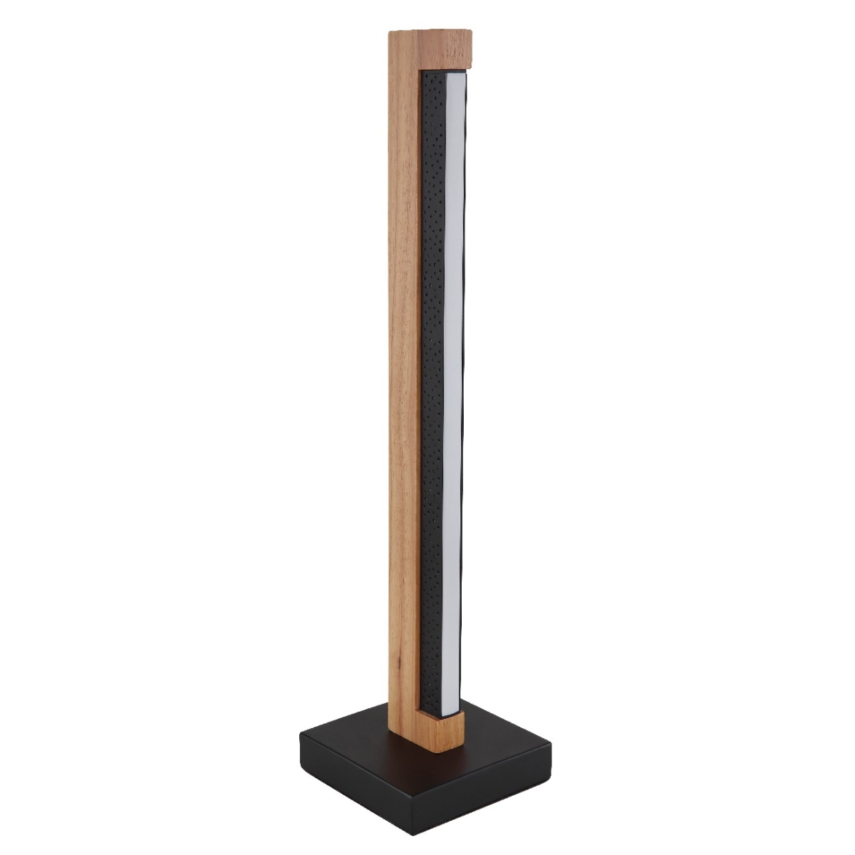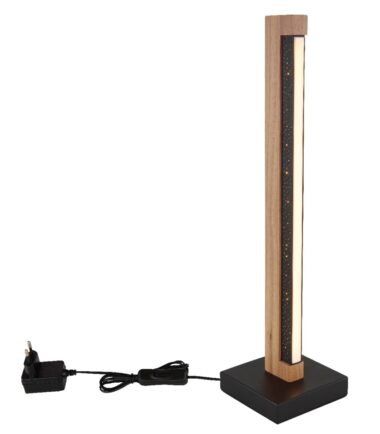 Kvadratna stona lampa sa ravnim drvenim gredama je moderan dodatak vašem stolu ili noćnom ormariću. Mat crno lakirano telo u kombinaciji sa smeđim drvenim gredama daje lampi moderan i topao izgled. Aluminijumski abažur je takođe mat crne boje i opremljen je opal plastikom, koja obezbeđuje ravnomernu distribuciju svetlosti bez odsjaja. Sa veličinom od 120 mm po dužini i širini, ova lampa štedi prostor i savršeno se uklapa u male prostore. Osvetljenost od 150 lumena sa snagom od 6W i prijatnom temperaturom boje od 3000K stavra prijatnu atmosferu. Koristite praktičan prekidač na kablu za paljenje i gašenje stone lampe i uživajte u prijatnom svetlu.