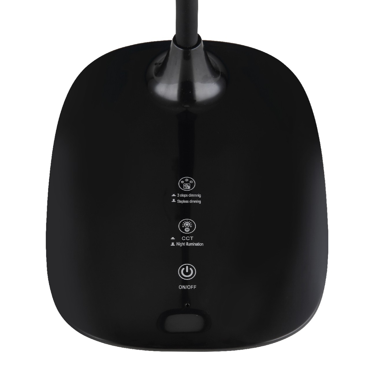 Stona lampa od mat crne plastike je elegantan i praktičan kućni dodatak. Sa LED osvetljenjem i flekso funkcijom, lampu možete jednostavno prilagoditi vašim potrebama. Telo je napravljeno do sjajne crne plastike, dok je abažur od satinirane plastike i mat crnog silikona. Lampa ima dimer na dodir, noćno svetlo, kao i funkciju memorije tako da pamti poslednje postavljeno podešavanje. Adapter se dobija uz lampu. Sa dužinom od 280 mm i širinom od 136 mm, lampa ima osvetljenje sa izlaznom snagom od 520 lumena i CCT od 4000K do 6500K. Lampa je idealan dodatak vašem domu ili kancelariji.