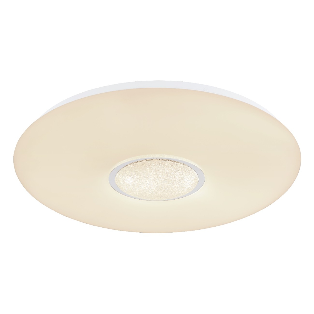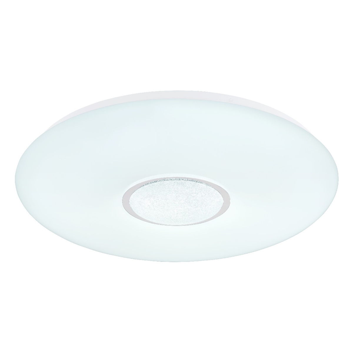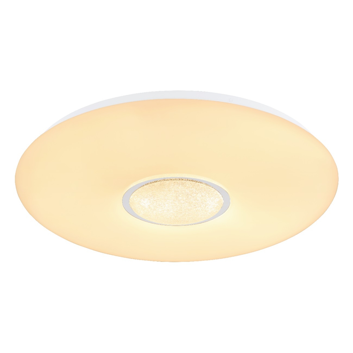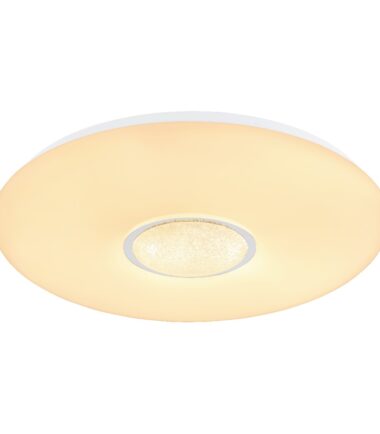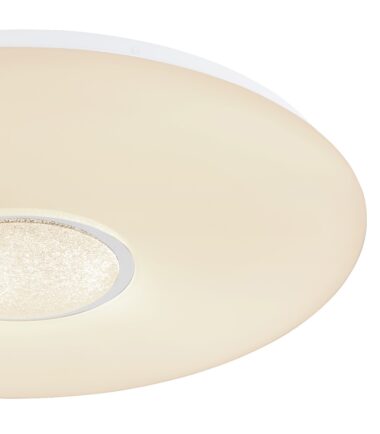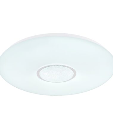 Ova okrugla plafonska lampa iz serije SULLY (ø 49 cm) je divna za vaš enterijer. Sastoji se od opalnog plastičnog prstena odvojenog metalnim prstenom od unutrašnje površine prelepih staklenih kristala. Ovim su obuhvaćene uključene LED sijalice, koje obezbeđuju 2500 lumena jake svetlosti. Pored toga, ne samo da možete da prigušite plafonsko svetlo pomoću daljinskog upravljača, već i da pojedinačno podesite boju svetla u nekoliko faza između tople bele (3000 Kelvin) i hladno bele (6500 Kelvin) i takođe imate RGB i funkciju noćnog svetla. Funkcija efekta duge u kojoj lampa osvetljava prostoriju u duginim bojama stvara jedinstvenu atmosferu.