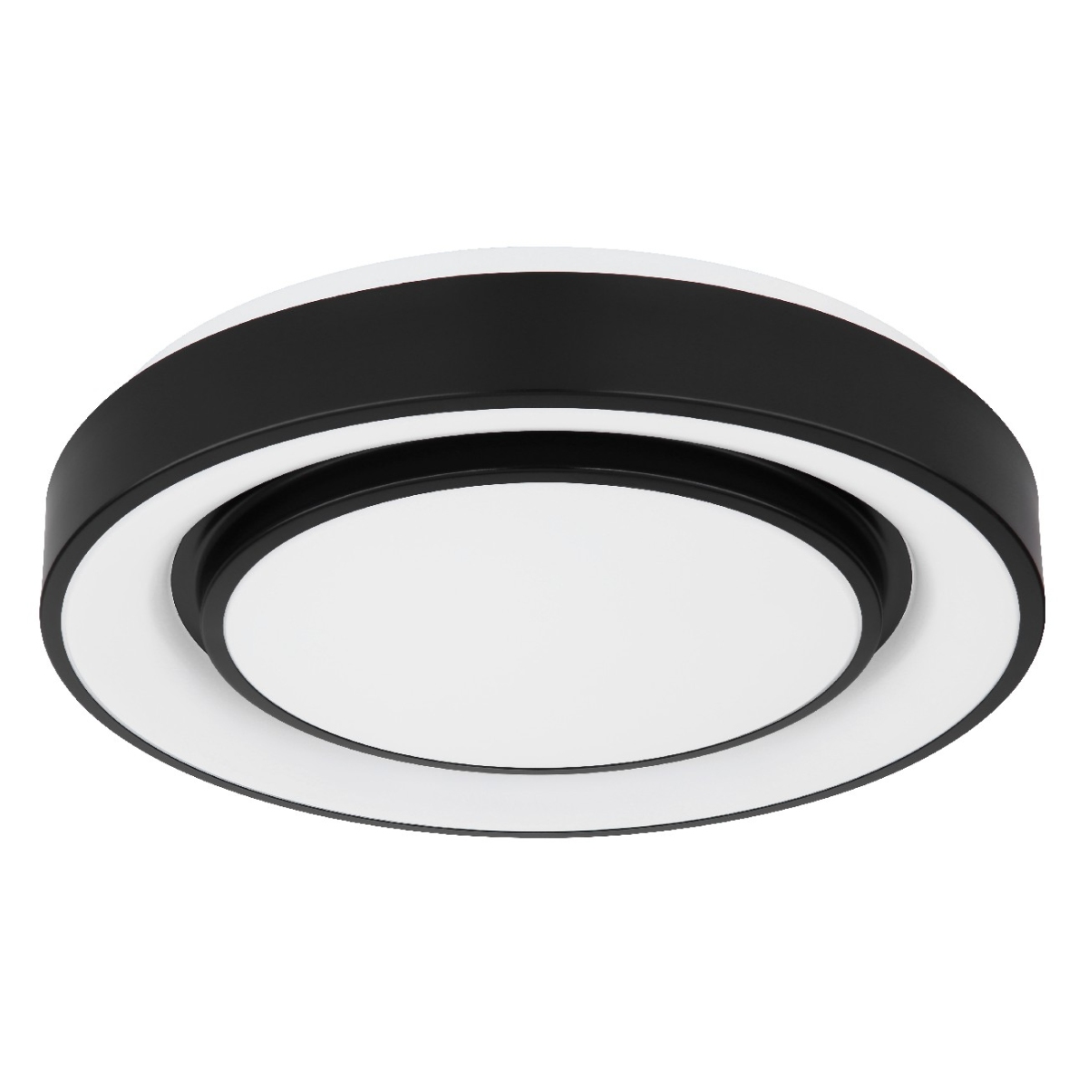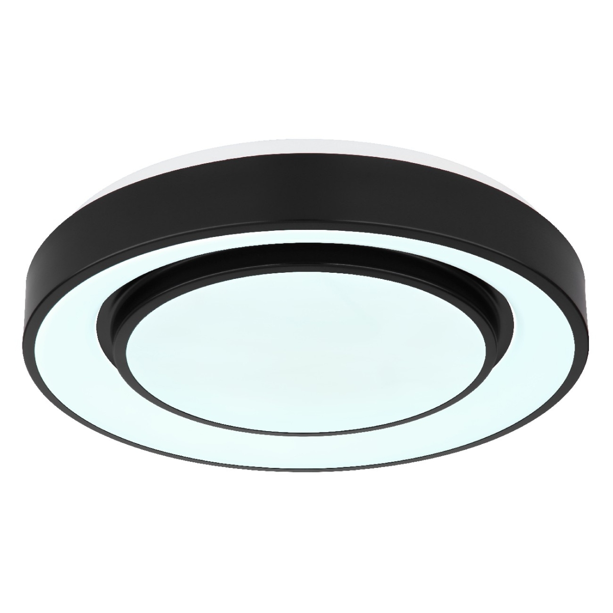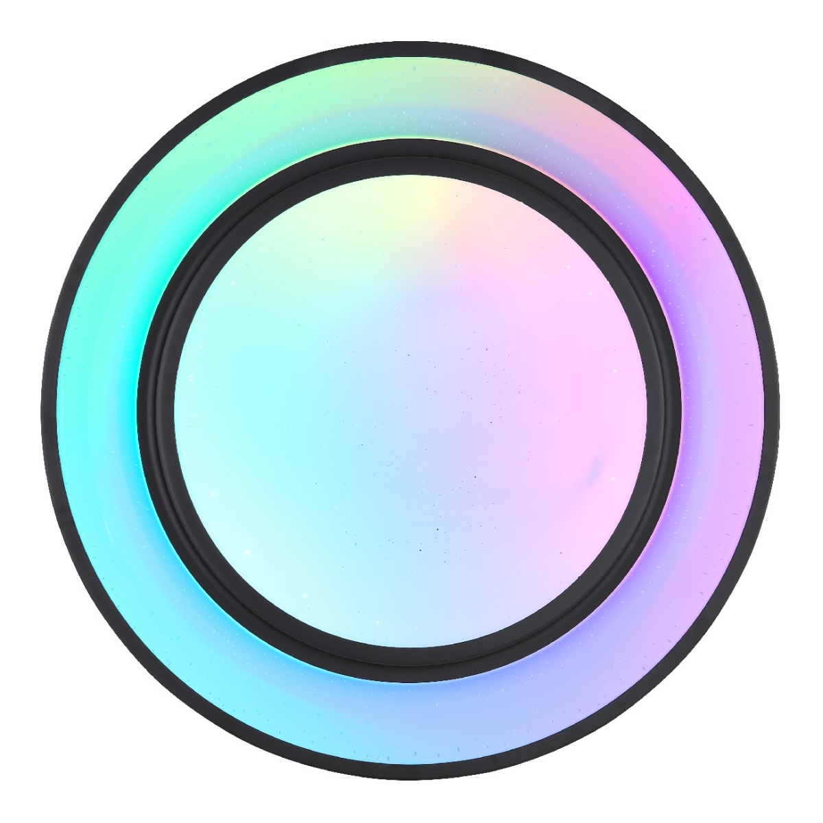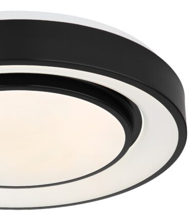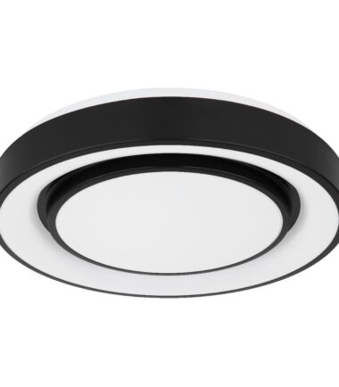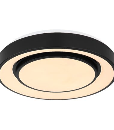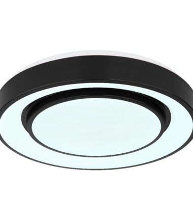 Ova okrugla plafonska lampa serije SULLY (ø 38 cm) je divan dodatak vašem enterijeru. Sastoji se od opalnog plastičnog prstena i unutrašnjeg prstena napravljenog od crnog metala, od kojih su unutrašnje površine obezbeđene opalnom plastikom. Zahvaljujući uključenim LED diodama, plafonska lampa Sully 1500 lumena pruža jako svetlo. Uz obezbeđen daljinski upravljač, ne samo da možete da prigušite plafonsku lampu, već i da podesite boju svetla pojedinačno u nekoliko faza između 3000 Kelvina (topla bela) i 6500 Kelvina (hladno bela) i takođe je pustite da sija u RGB bojama. Funkcija efekta duge u kojoj svetiljka osvetljava prostoriju u duginim bojama stvara jedinstvenu atmosferu.