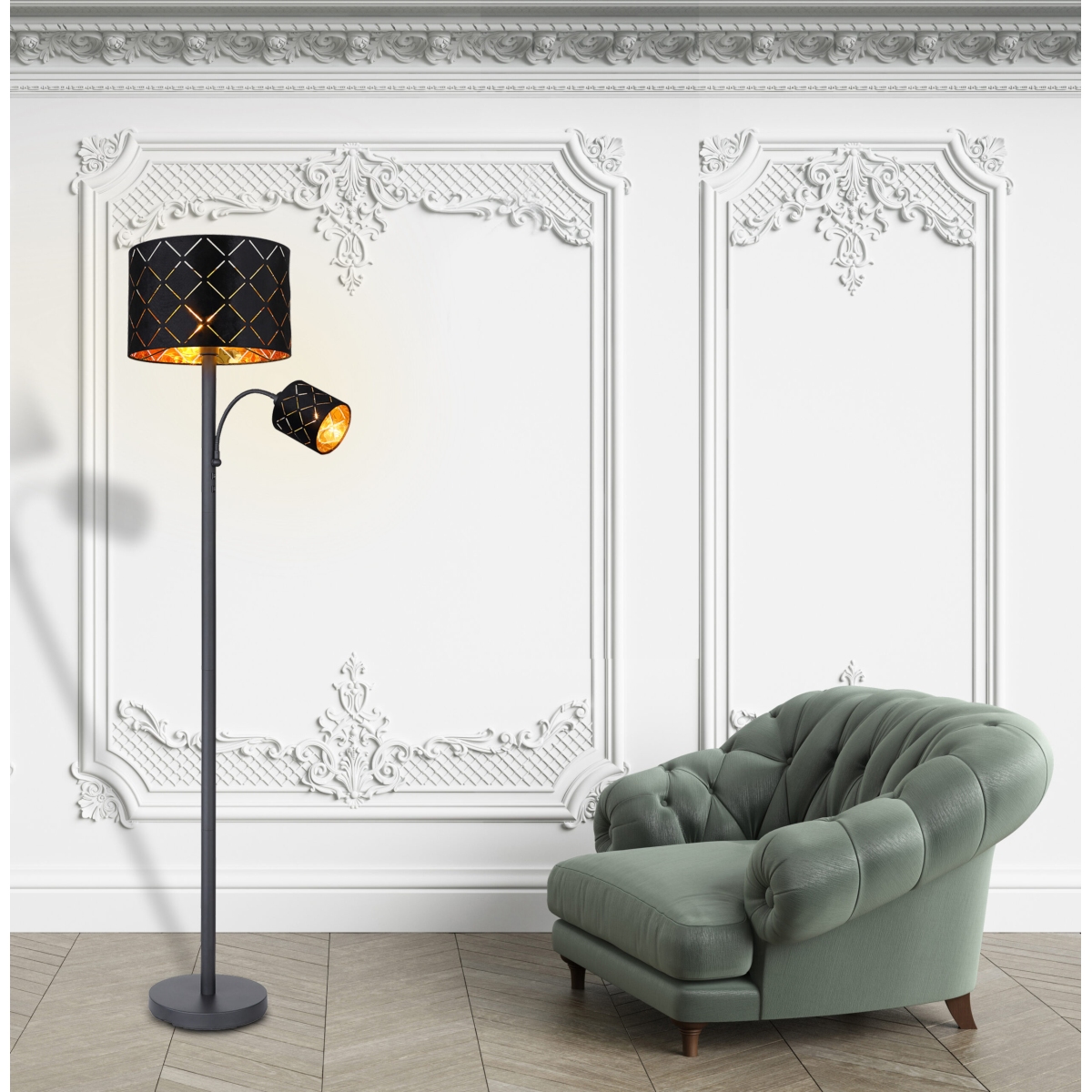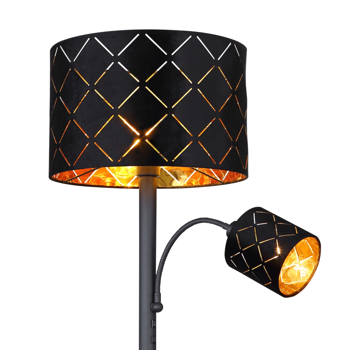 Jednostavno i elegantno! Podna lampa SUNNA savršeno se uklapa u svaku dnevnu sobu svojim jednostavnim, ali prelepim izgledom. Sa crnom metalnom šipkom i dva crna abažura napravljena od baršuna sa ukrasnim detaljima i unutrašnjim delom zlatne boje, ovu lampu možete postaviti bilo gde (H: 162cm, DM: 35cm). Postojeća grla E27 i E14 (svetlo za čitanje) mogu se opremiti pojedinačno po sopstvenoj želji (max. 40 vati). Ima i drugih sjajnih modela u ovoj seriji.