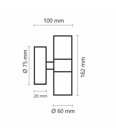 Zidna svetiljka za spoljnju upotrebu sa IP 44 zaštitom. U telu od nerđajućeg čelika nalaze se dva sijalična grla, tip GU10. Svetlosni snop se prostire u dva smera, gore i dole, a boja svetlosti zavisi od izbora samih sijalica. Predviđena je za postavljanje na razne tipove fasada, za dvorišta, terase, vrtove.