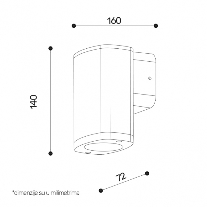 Spoljna zidna lampa modernog i atraktivnog dizajna izgleda za spoljašnju upotrebu, zahvaljujući IP54 zaštiti. Ova spoljna rasveta je moderno i praktično dizajnirano rešenje za zid spoljašnjeg dela objekta i idealna je za osvetljenje ulaza, staza, terase ili bilo kog dela spoljašnjosti vašeg doma ili poslovnog prostora. Poseduje jedno sijalično grlo tipa GU10.