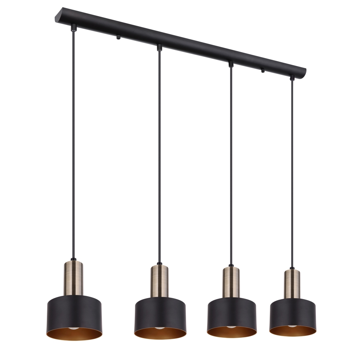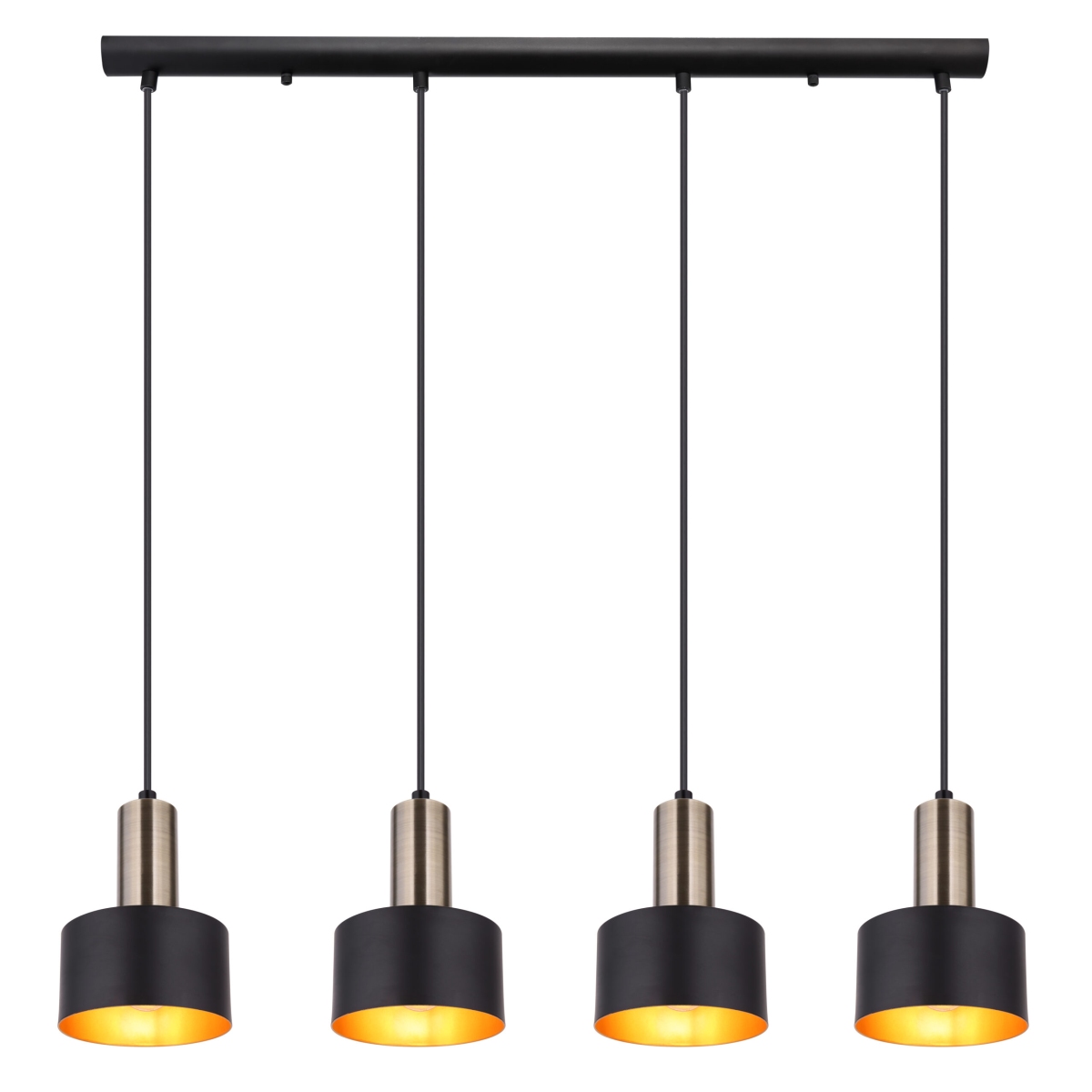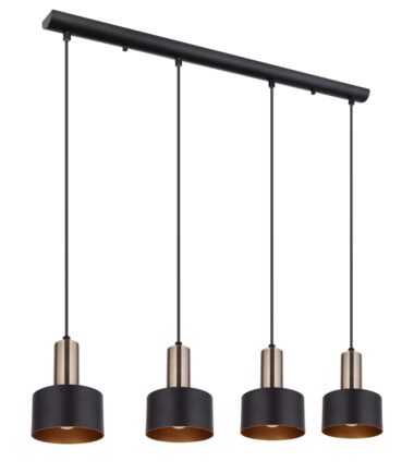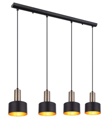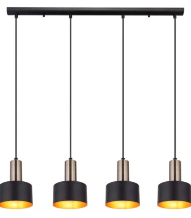 Ova elegantna, crna metalna visilica SWINNI ističe se svojim prelepim dizajnom. Za šinu su zakačena 4 abažura. Unutrašnjost abažura sa zlatnom bojom odražavaju prelepe efekte osvetljenja. Grla E27 čine slobodan izbor sijalica (4 max. 40 vati). Zbog njihove dugovečnosti i uštede energije preporučujemo LED sijalice. Drugi modeli u ovoj seriji upotpuniće vaš životni prostor.