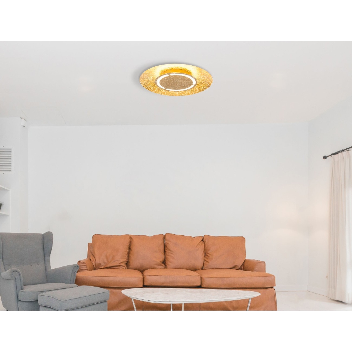 Ova plafonska lampa boje zlata, serija TABEA, posebno je upečatljiva zbog svog elegantnog izgleda. Led sijalicom, koja sija sa 1900 lumena i toplom belom svetlom bojom od 3000K, osigurava savršeno osvetljenje svake prostorije. Dodatni plus je radni vek od 20.000 sati. Pomoću drugih proizvoda iz ove serije sliku možete upotpuniti u svom životnom prostoru.