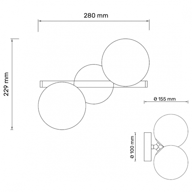 Dimenzije 280 x 229 x 155 mm (kugla Ø130 mm)