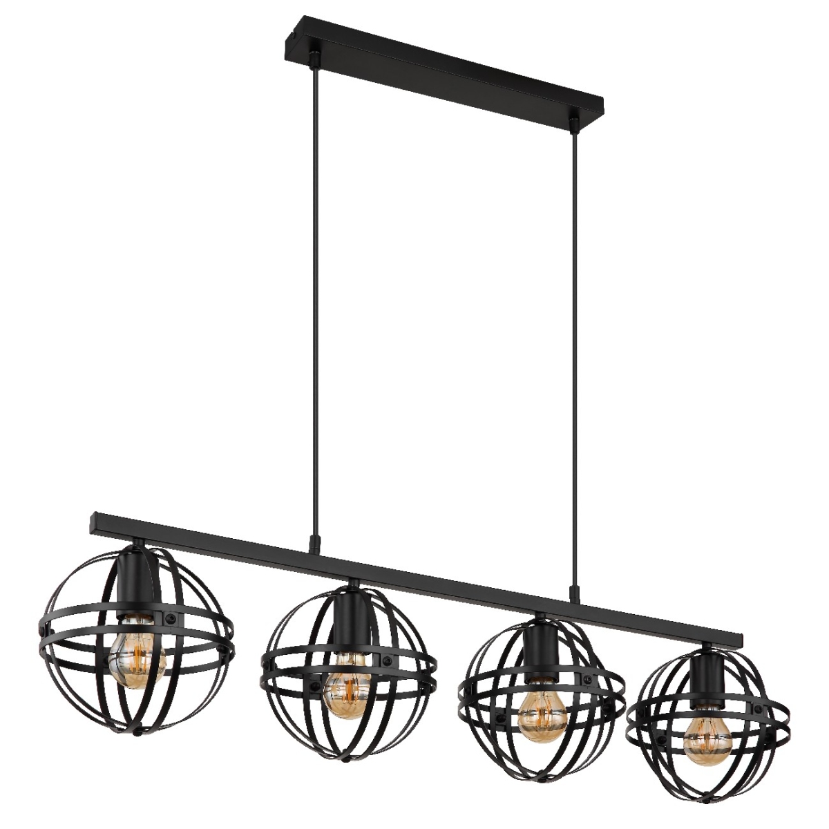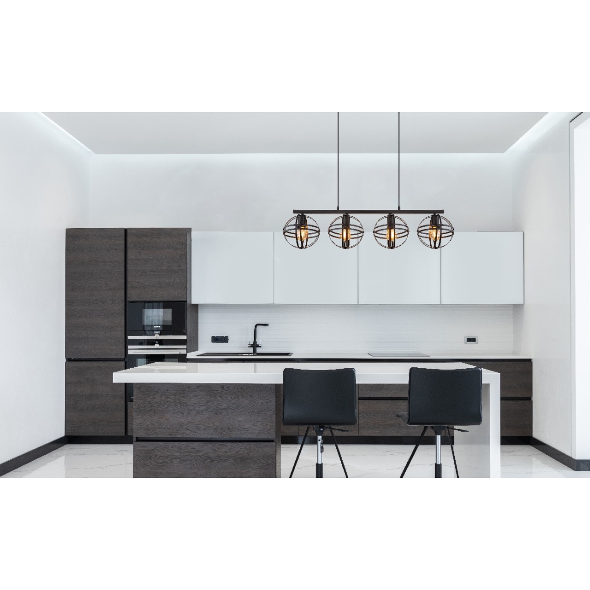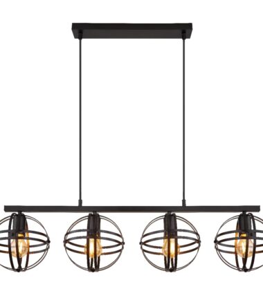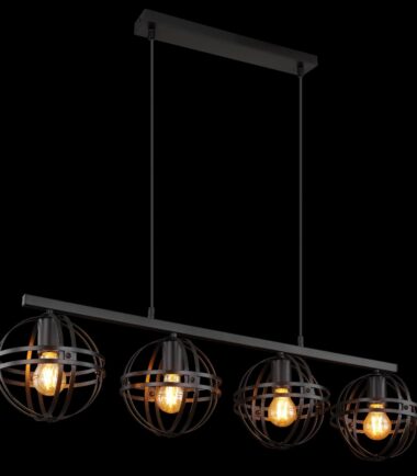 Ova visilica serije TAMARA napravljena je od metala u mat crnoj boji i suspendovana je PVC kablom u crnoj boji. Visina lampe može da se podesi u skladu sa vašim potrebama. Abažuri lampe se isporučuju rastavljeni. Dimenzije visilice su LxWxH: 950x200x1200mm. Potrebne sijalice nisu uključene i moraju se kupiti posebno. Potrebno je ukupno četiri E27 sijalice sa maksimalnim izlazom od 60 vati na 230 volti.