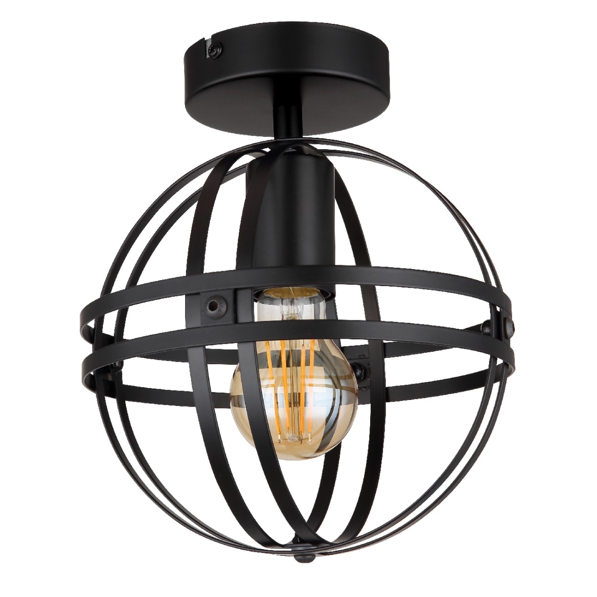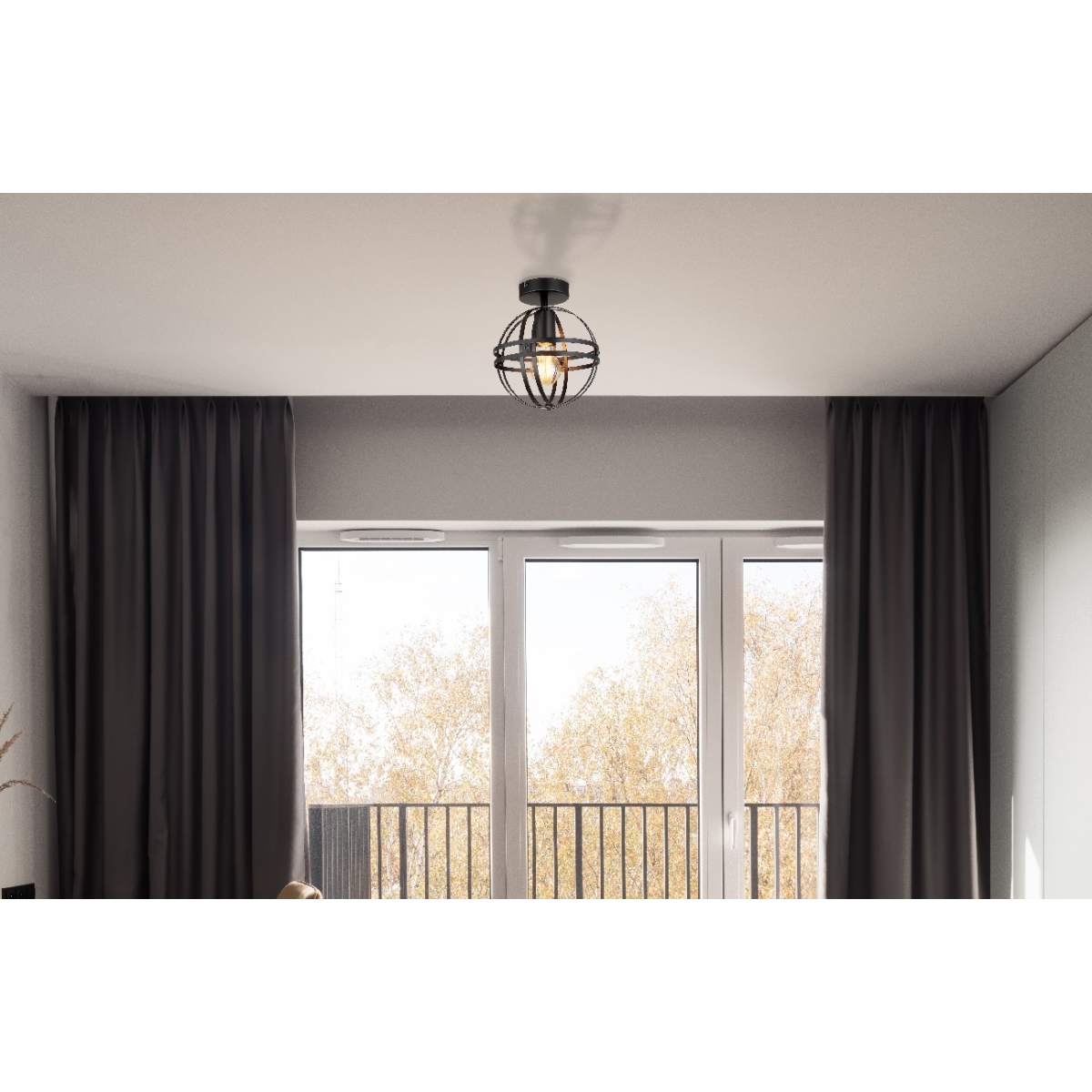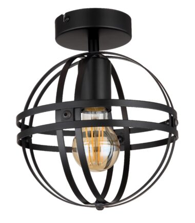 Ova moderna plafonska lampa ubeđuje sjajnom šemom boja i materijala. Kratka crna metalna šipka prodire iz okruglog plafonskog nosača i završava se na grlu E27, koje je prekriveno oblikovanim okruglim metalnim kućištem u crnoj boji (Ø20 cm). Grlo E27 vam omogućava da slobodno odaberete boju svetla i jačinu do maksimalne snage od 60 vati. Zbog uštede energije i dugovečnosti preporučujemo LED sijalice.