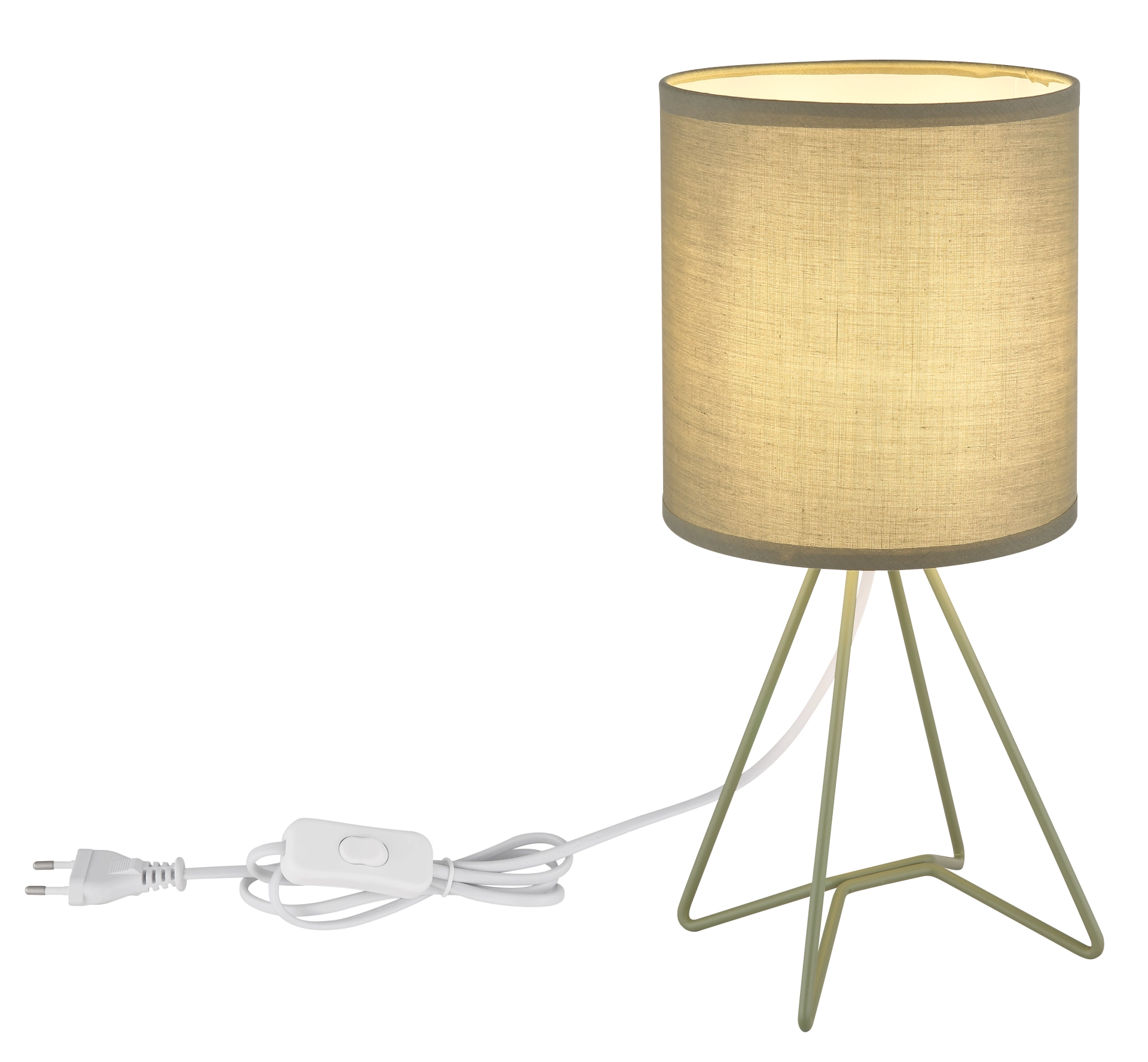Stona lampa TAMIAN kombinuje elegantan dizajn sa jednostavnom funkcionalnošću. Njen cilindrični abažur od tkanine u bledozelenoj boji i odgovarajuće metalno kućište daju joj mekan, smirujući sjaj. Sa prečnikom od 160 mm i čvrstim metalnim šipkama na postolju, TAMIAN se harmonično uklapa u različite stilove nameštaja. Lampa je opremljena grlom E14 koje pruža efikasno osvetljenje. Praktični prekidač na kablu omogućava lako rukovanje i pruža dodatnu udobnost. Bledozelena šema boja abažura i kućišta stvara elegantnu atmosferu i postavlja stilske akcente na svaki sto. Idealna za dnevne sobe, spavaće sobe ili radne prostore, stona lampa TAMIAN nudi i funkcionalno osvetljenje i estetski dizajn. Upotpunite svoj dom ovim elegantnim izvorom svetlosti i uživajte u kombinaciji stila i funkcije.