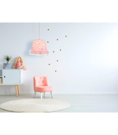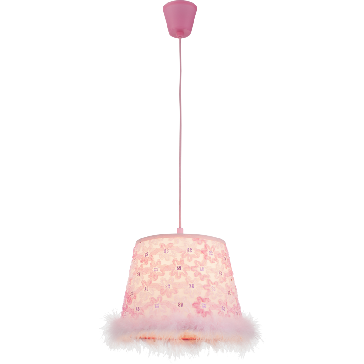 Viseća lampa Tarso privlači pažnju svih. Ova lampa se sastoji od ružičastog plastičnog suspenzije i ružičastog tekstilnog abažura, prečnika 30 cm. Dostupno grlo E27 vam omogućava da izaberete sijalicu (maks. 60 W). Zbog uštede energije i dugotrajnosti, preporučujemo LED lampe.