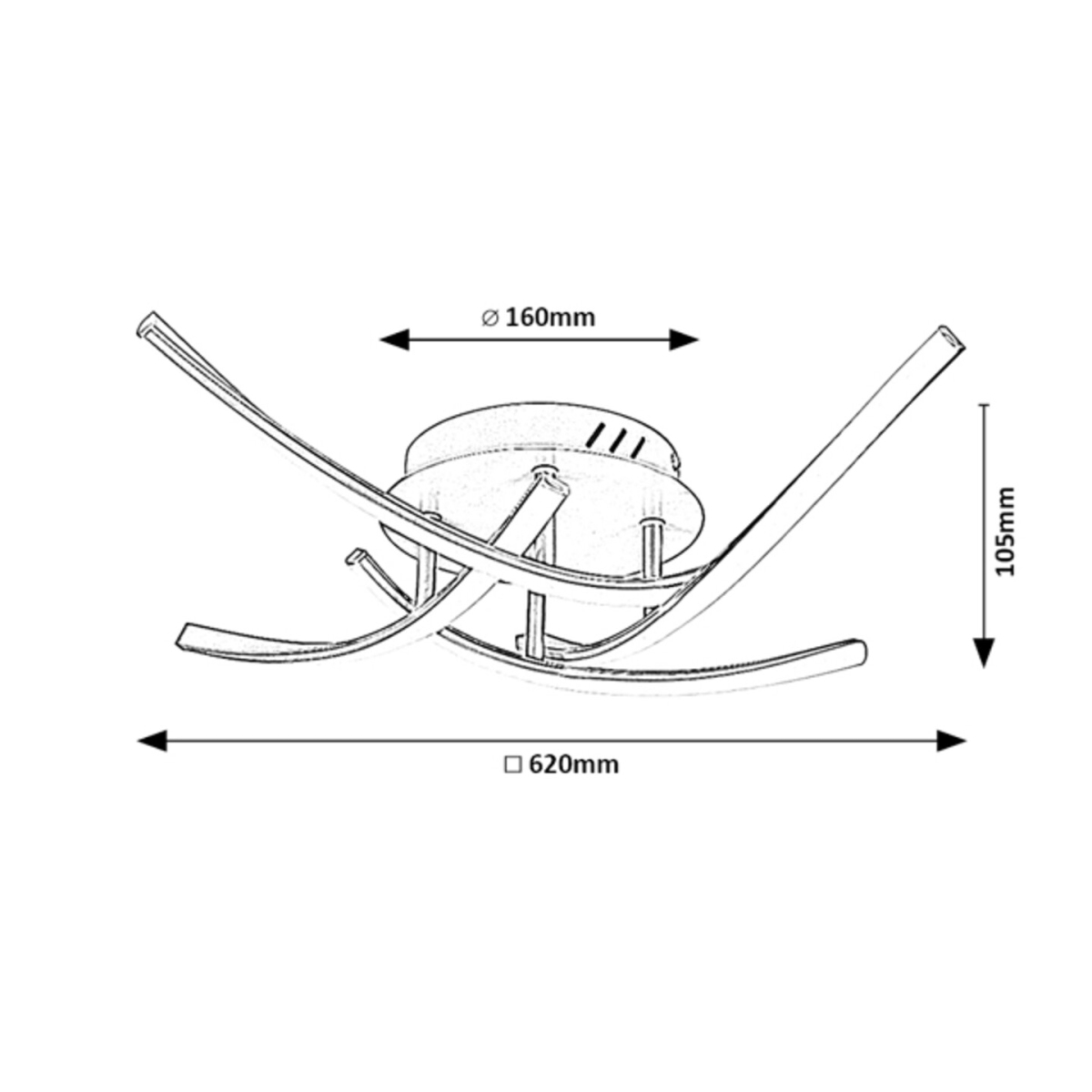 Plafonjeru TATJANA sa 4 sijalice preporučujemo prvenstveno onima koji traže modernu lampu čistog dizajna u svojoj dnevnoj ili spavaćoj sobi. Ovaj metalni model srebrne boje može se pričvrstiti na plafon uz pomoć okrugle ukrasne osnove. Plastični abažuri su beli. TATJANA plafonjeru karakterišu četiri lučna elementa koji strše u različitim pravcima. Lampa sadrži ugrađeni LED izvor svetlosti snage 30W, svetlosnog toka od 1.950 lumena, životnog veka od 15.000 sati i temperature boje od 4.000 K. Ovaj model emituje prirodno belo svetlo i ima sledeće dimenzije : prečnik 620 mm, rastojanje od plafona 105 mm, prečnik ugradnje 160 mm.