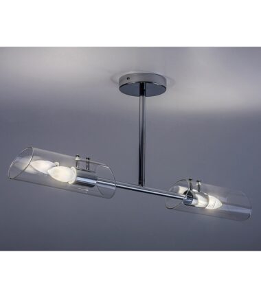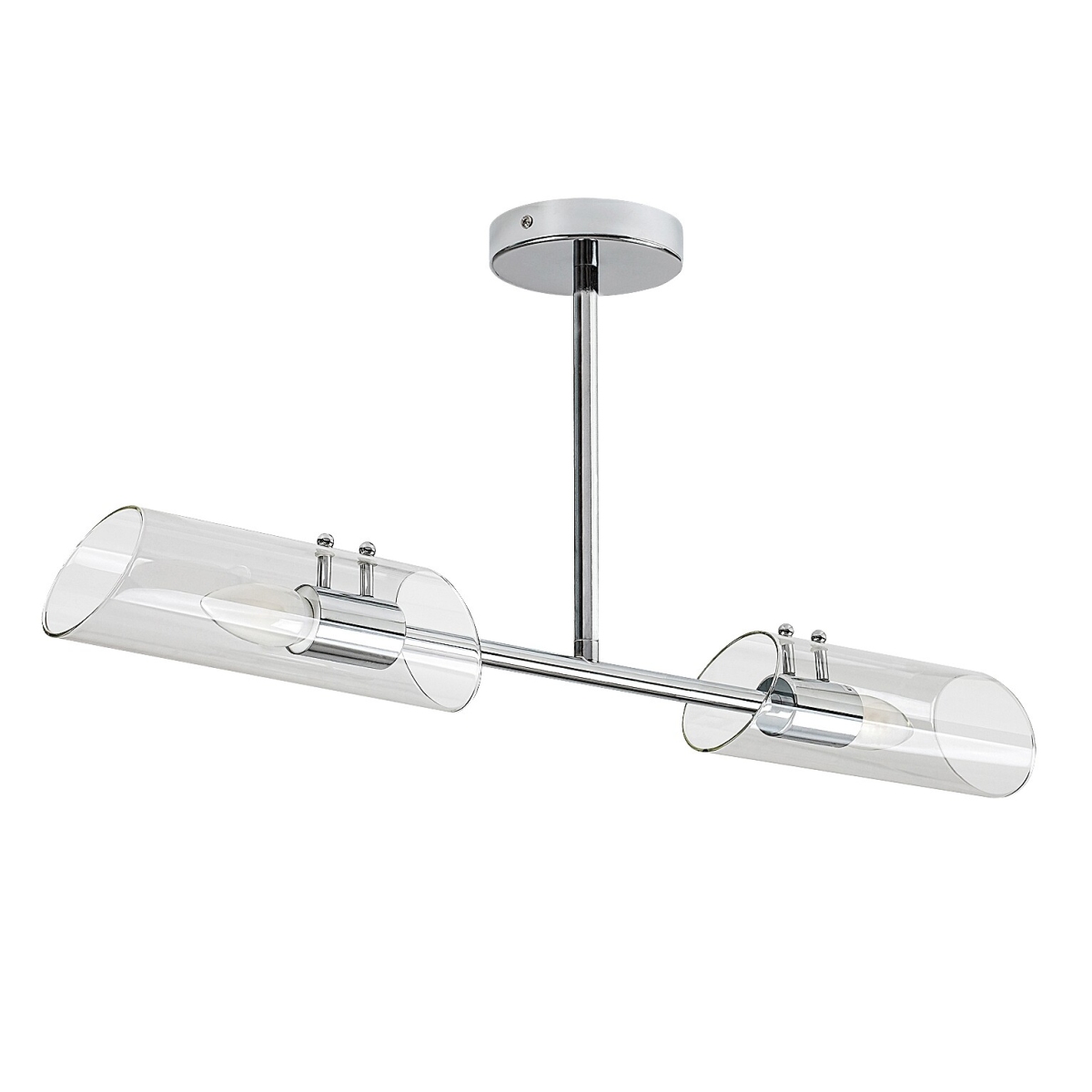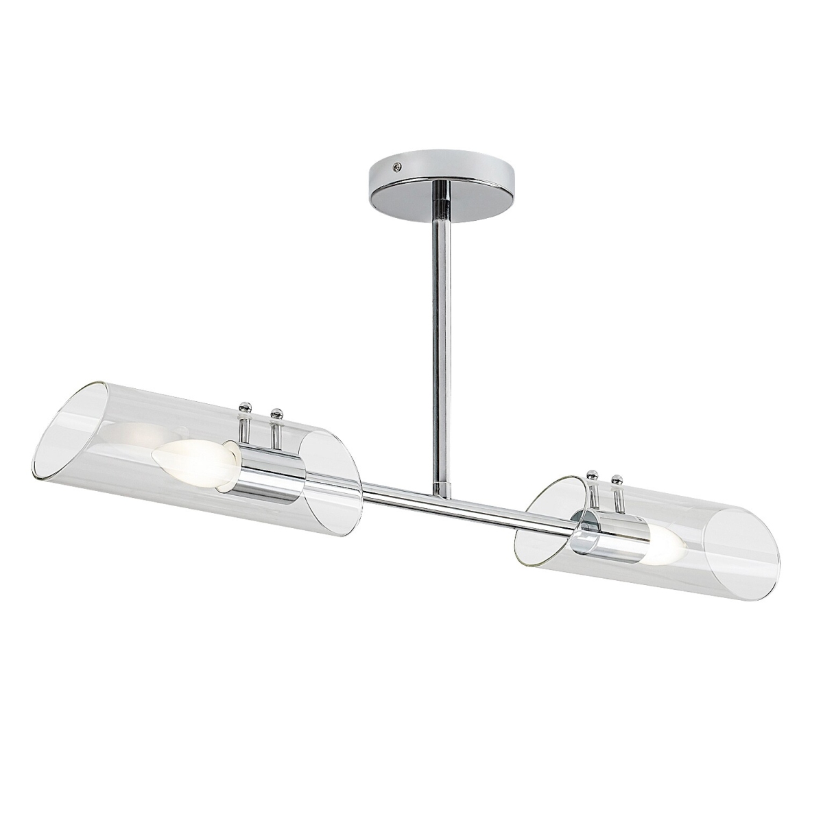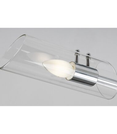 Sa svojim jedinstvenim dizajnom Teodoro plafonska lampa za kupatilo može biti moderan komad nameštaja u vašem modernom kupatilu. Metalna lampa hromirane boje sastoji se od elementa u obliku slova T koji je pričvršćen za malu, okruglu dekorativnu osnovu i od glava sijalica pričvršćenih za gore pomenuti element. Cilindrični abažuri sa šalovima su napravljeni od stakla pa je dobro koristiti ovaj model sa estetskim sijalicama nekonvencionalnog oblika. Teodoro može da radi sa dve sijalice, svaka snage do 12 V. Tip grla je E14. Ako želite da postignete moderan, čist efekat u kupatilu, koristite ovu lampu sa sijalicama koje zrače prirodno belo svetlo. Teodoro IP44 zaštita obezbeđuje da ovaj model bude zaštićen od prodora čvrstih čestica prečnika od 1 mm ili više i od prskanja vode iz bilo kog smera. Širina lampe je 730 mm, rastojanje od plafona 320 mm, prečnik ugradnje 120 mm, prečnik svakog abažura 80 mm, njihova dužina 270 mm. Ovaj model se isporučuje bez izvora svetlosti.