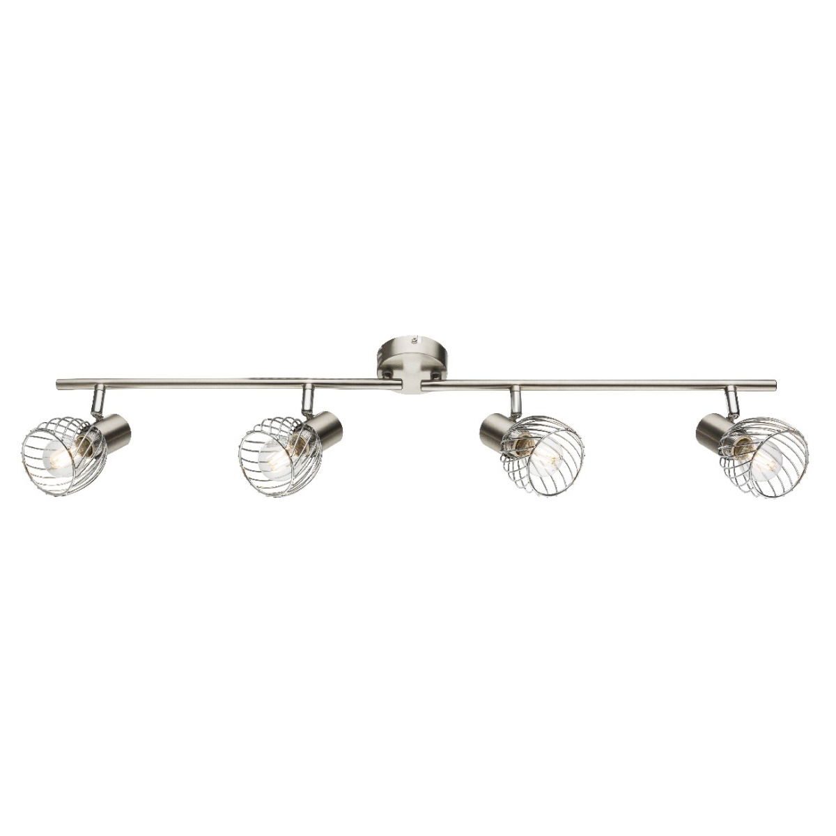 Plafonska lampa ove serije proizvoda ističe se se kombinacijom dizajna i izrade. Kombinacija materijala nikl-mat metala i mrežastog metalnog abažura pruža to nešto posebno. Četiri pokretna spota pričvršćena za dve ravne grane opremljena su E14 grlom, koje vam omogućava da sami odaberete sijalicu (max.40W) kako biste se odlučili za intenzitet svetlosti i boju svetla. Zbog uštede energije i trajnosti preporučujemo LED sijalice. Uz ostale plafonske lampe iste serije proizvoda, sliku možete upotpuniti u svojim sobama.