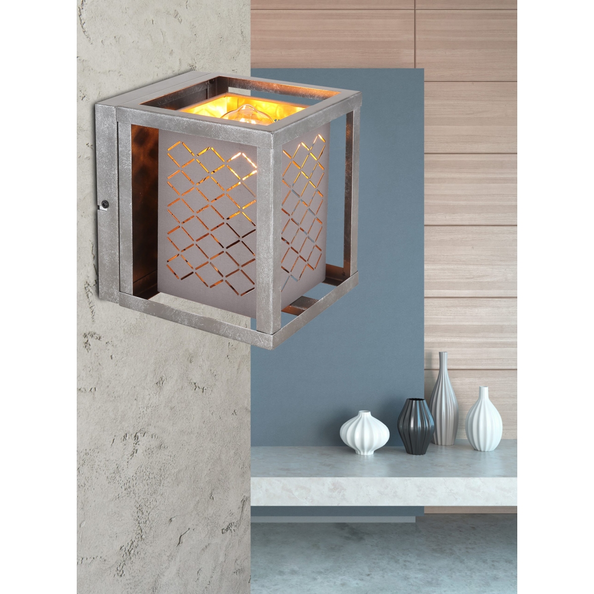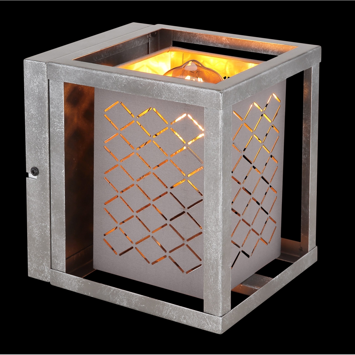Ova zidna lampa iz serije TOMAS (17×19,5 cm) je divan dodatak vašem enterijeru. Zidna lampa visine 20 cm sastoji se od metalnog rama srebrne boje, koji je obezbeđen kvadratnim tekstilnim abažurom zatamnjenom spolja i zlatnom zatamnjenom iznutra linearnim detaljima. Možete je opremiti E27 sijalicom po vašem izboru, što vam daje mogućnost da pojedinačno odredite boju svetla i jačinu. Sa ostalim modelima iste serije možete napraviti elegantan ambijent u svom domu.
