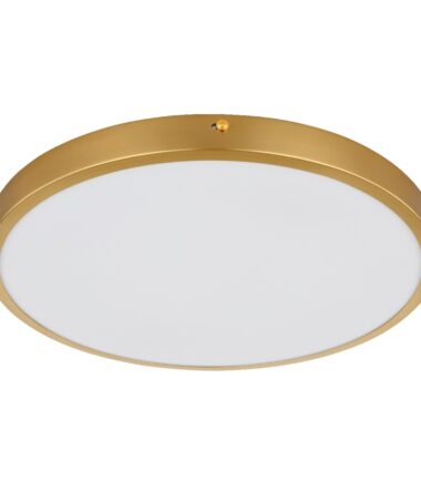 Napravljena od metala boje mesinga, plafonska lampa TIBEY serije impresionira svojim jednostavnim dizajnom. Okrugla plafonska lampa (Ø 35 cm) sa opalnim plastičnim poklopcem ima ugrađen LED panel koji emituje toplu belu svetlost od 3000 Kelvina i tako stvara prijatnu atmosferu.
